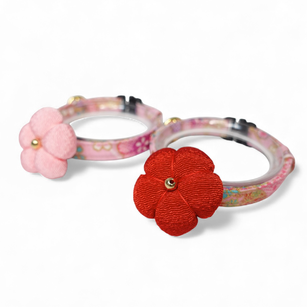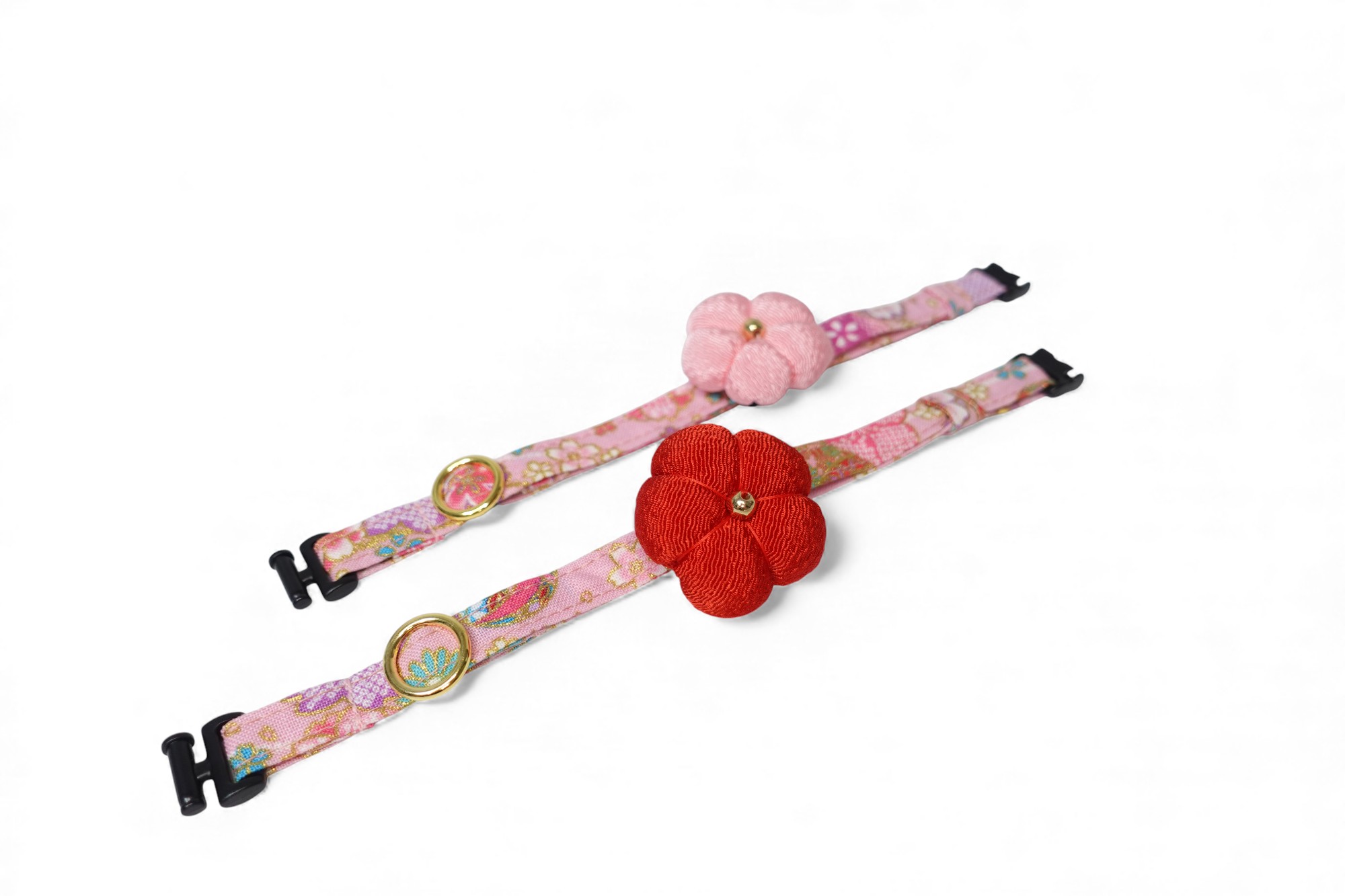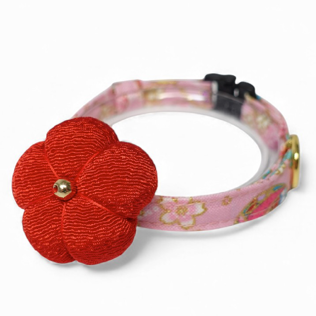 梅モチーフの和柄首輪・ピンク色首輪(梅2色展開) [UME-2]