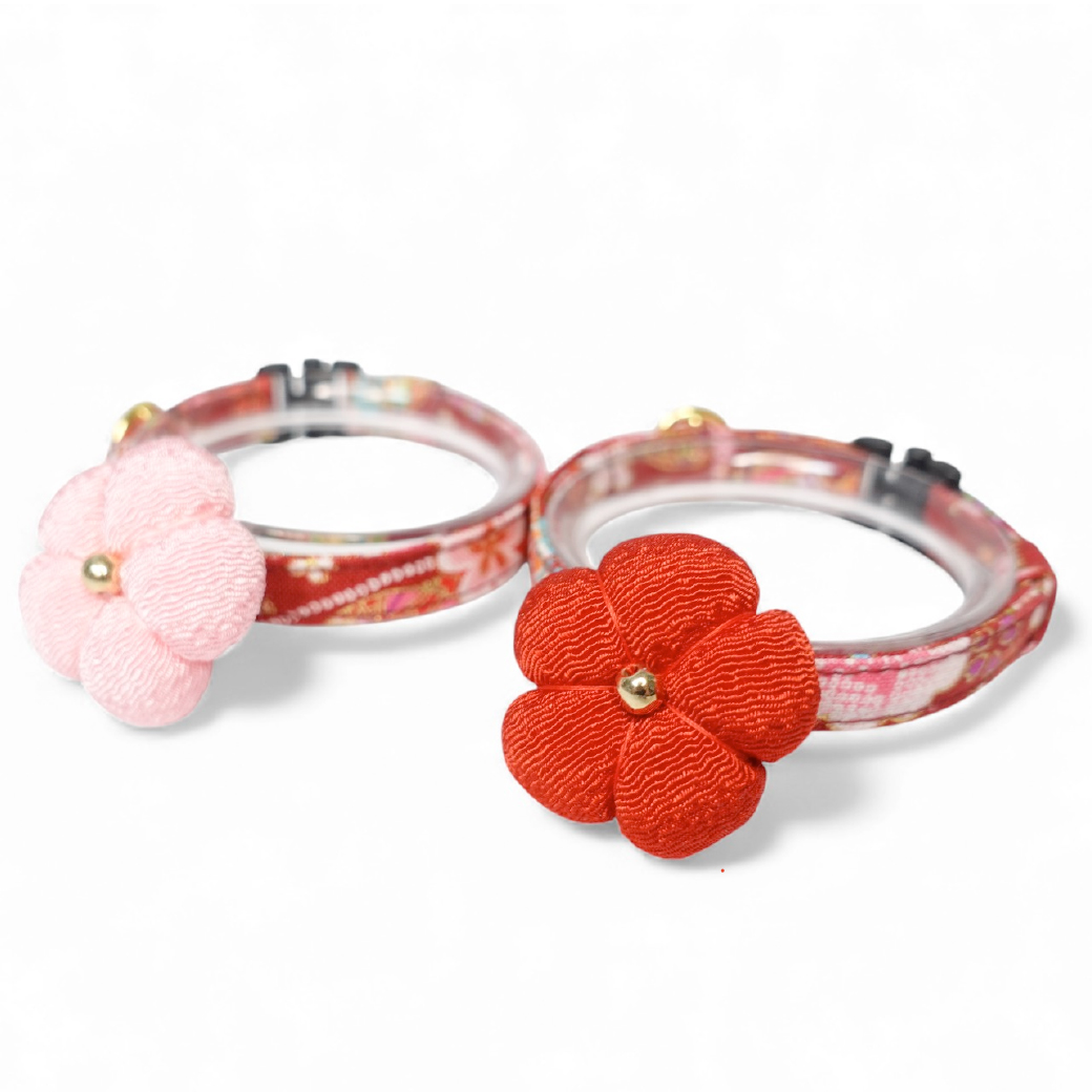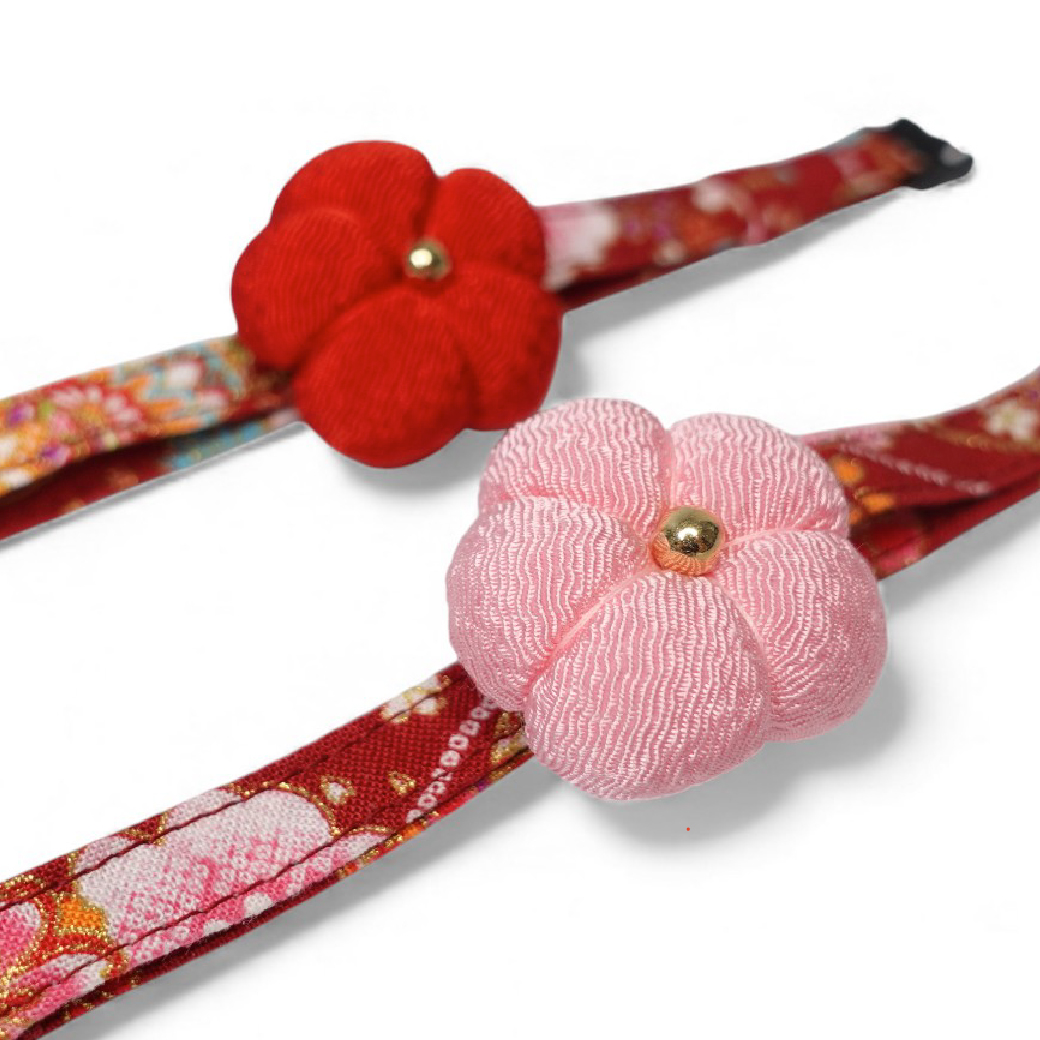 梅モチーフの和柄首輪・赤色首輪(梅2色展開) [UME-3]