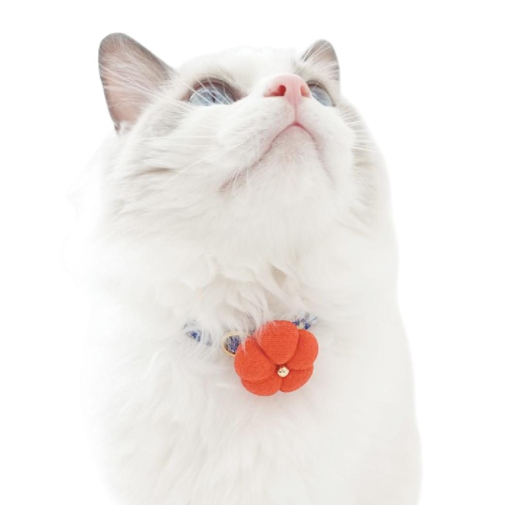 京ちりめんを使用しており、とても上品な仕上がりです。お花の大きさは何度も試作を繰り返し、猫ちゃんの顔の下で映える絶妙なサイズに設計しました。