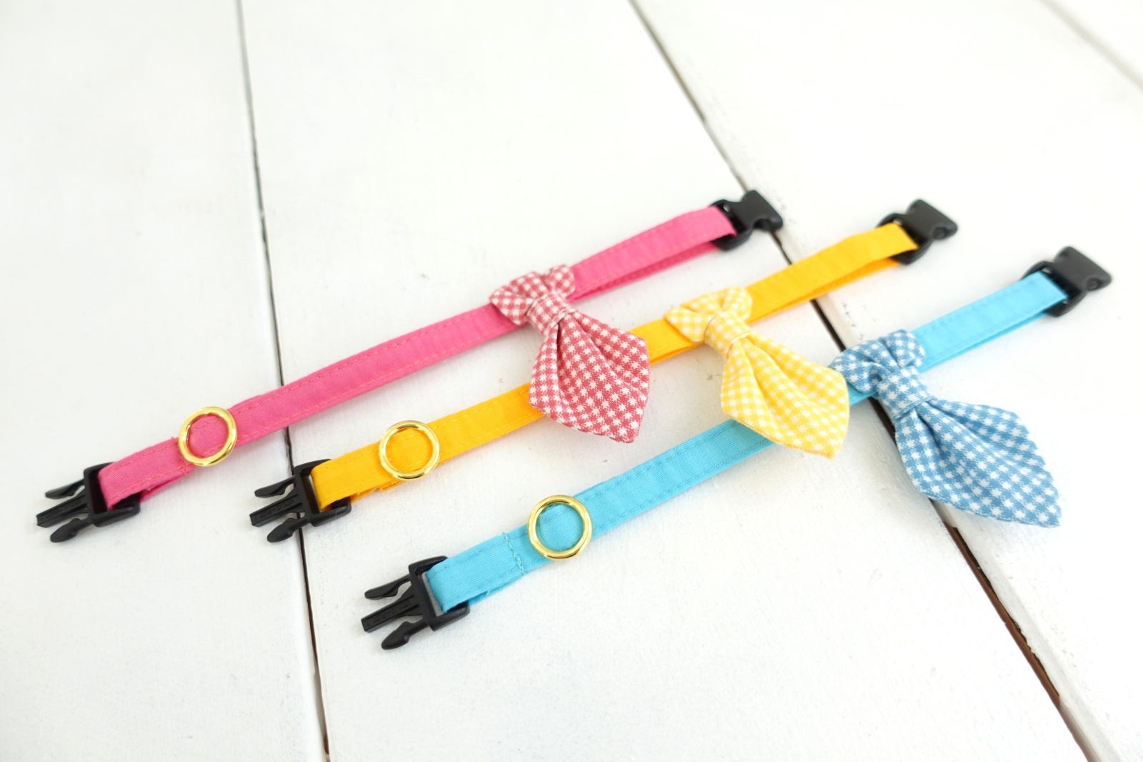 ベーシックなギンガムチェックと無地の首輪をコーディネートしました。