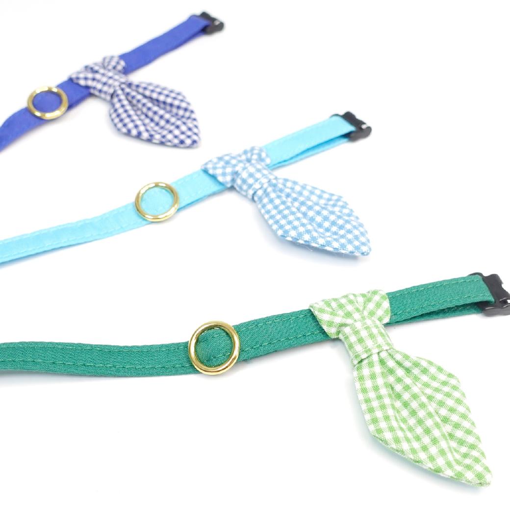 ギンガムチェックと無地の首輪の組み合わせがとても可愛いミニネクタイ首輪です。