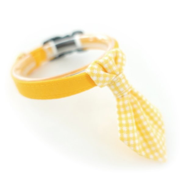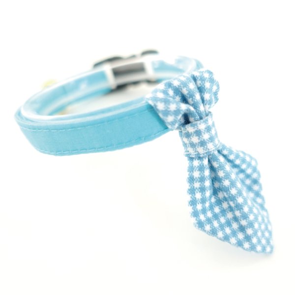 ベーシックなギンガムチェックと無地の首輪をコーディネートしました。