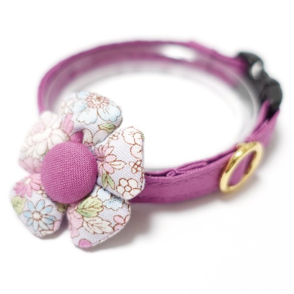 エアリーシュシュ・LIBERTYファブリック・シュシュ猫首輪・Emily(エミリー)グリーン×パープル [Airy-SBシュシュ-7]