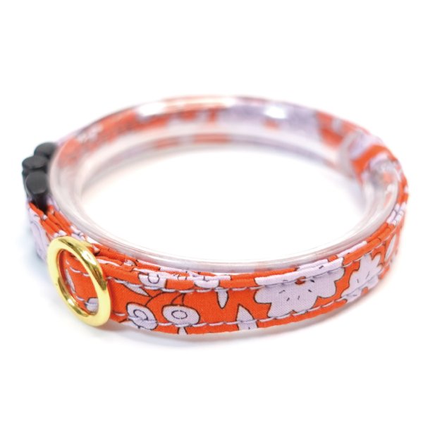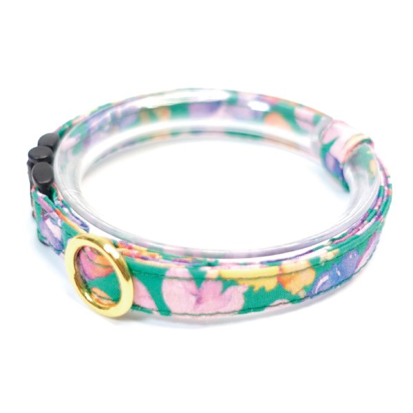 リバティ・ファブリックスで製作している猫首輪です。国内で手作りされたエレガントな猫用首輪です。