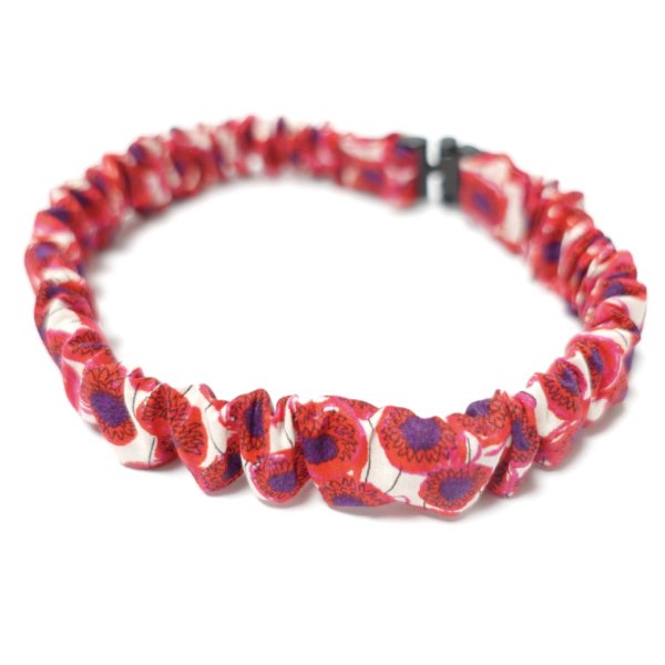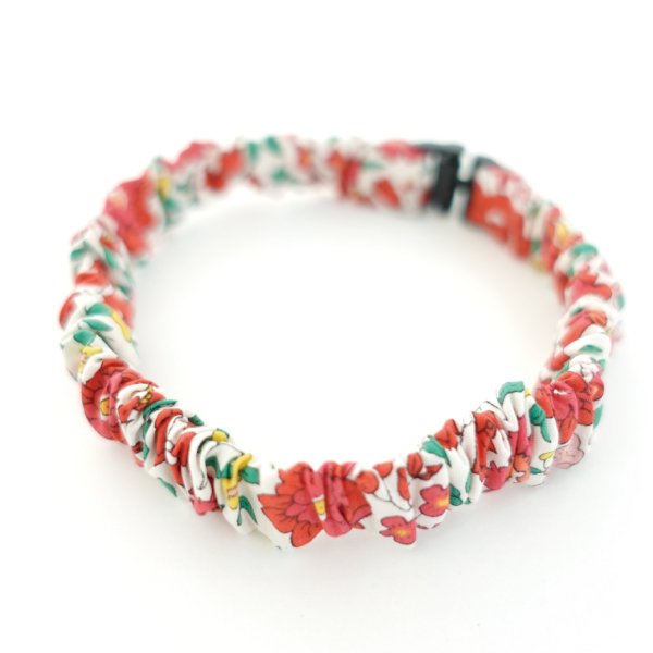 大人気の首に優しいシュシュ首輪にリボンをコーディネート根強い人気のシュシュ首輪にセーフティーバックルを付けました!より安全にオシャレを楽しめるシュシュ首輪が出来ました。