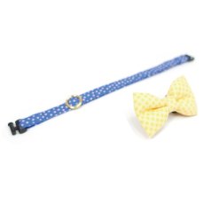 MODA・モダファブリックシリーズ・On The Bright Side(オンザブライトサイド)・リボン猫首輪・(イエロードットリボン×ブルードット首輪) [MODA-8]