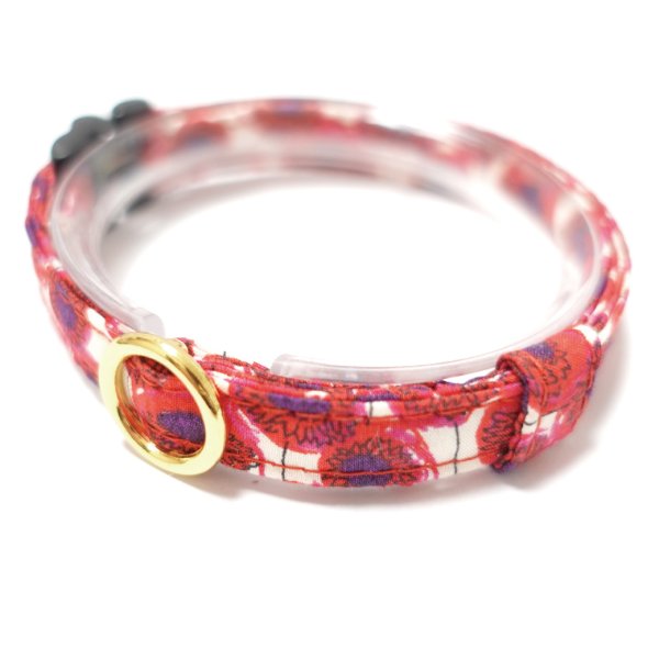 - > MODA・モダファブリックシリーズ・Georgia (ジョージア)・リボン猫首輪・(パープルリーフ柄リボン&小花柄首輪)