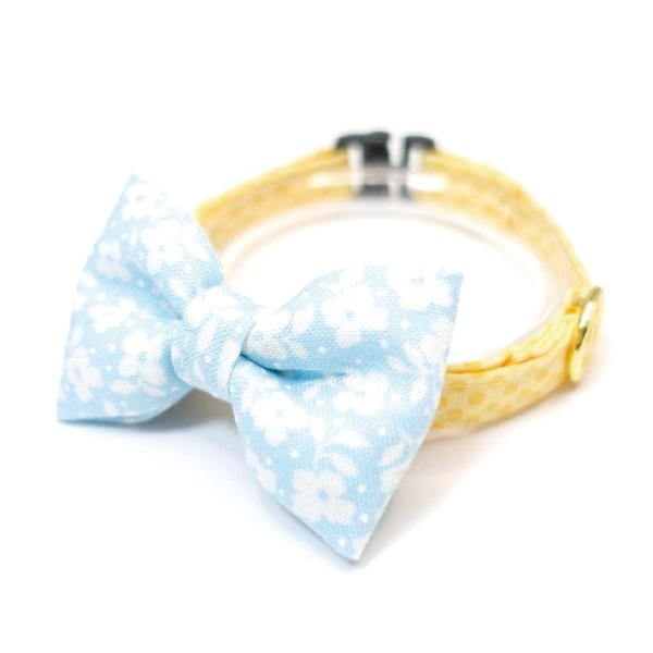 - > MODA・モダファブリックシリーズ・On The Bright Side(オンザブライトサイド)・リボン猫首輪・(イエロードットリボン×ピンクドット首輪)
