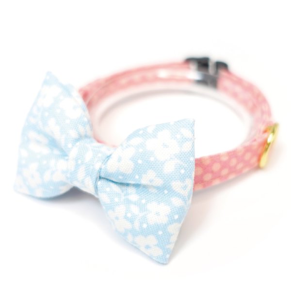 - > 大切な君に届けたい花束コレクションA柄・リボン猫首輪・(ブルー系小花柄リボン×ブルー系小花柄首輪)