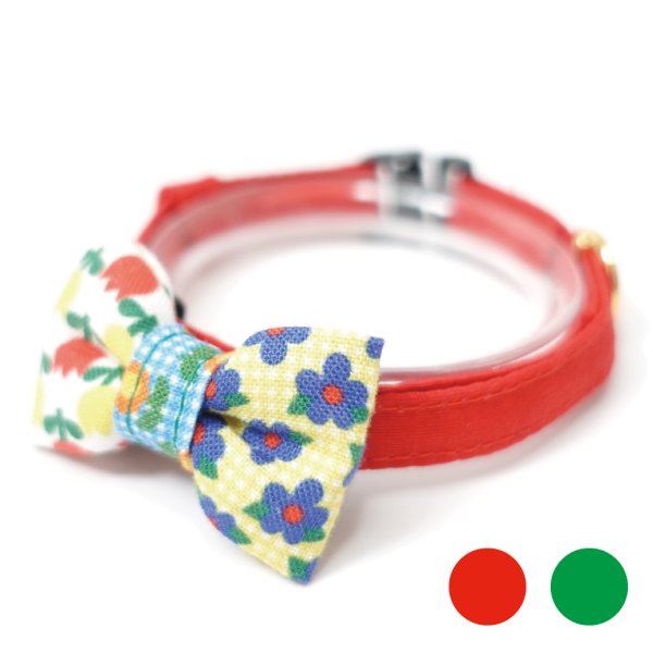 リンゴやいちご、お花の模様が小さなリボンにぎゅっと詰まった♪おしゃれレトロな猫首輪