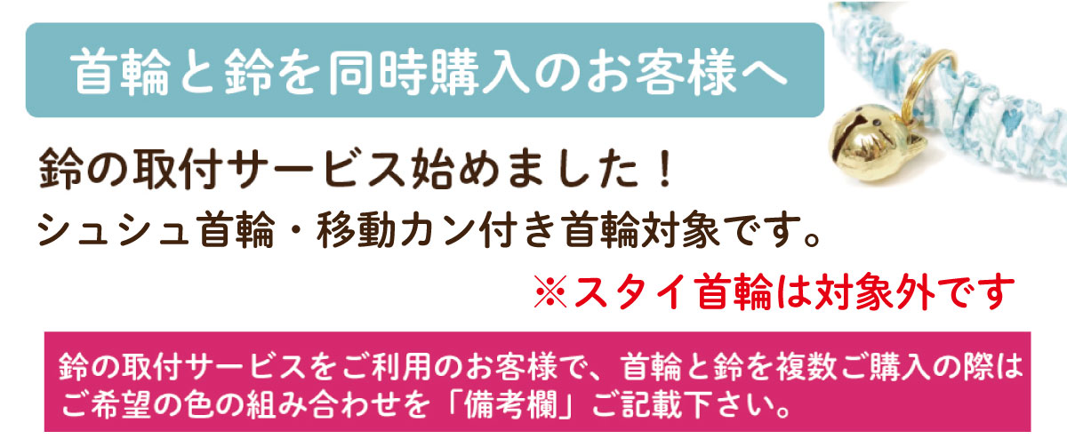 ※おしゃれ衿、スタイタイプ衿への鈴の取り付けはしておりません。