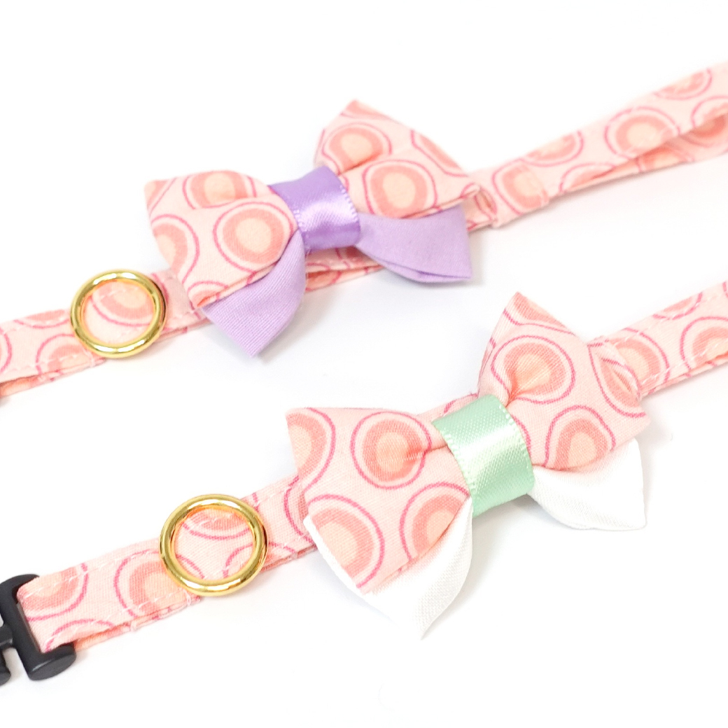 いろどり豊かなリボンを選んで、オリジナルの首輪との組み合わせをお楽しみください。
