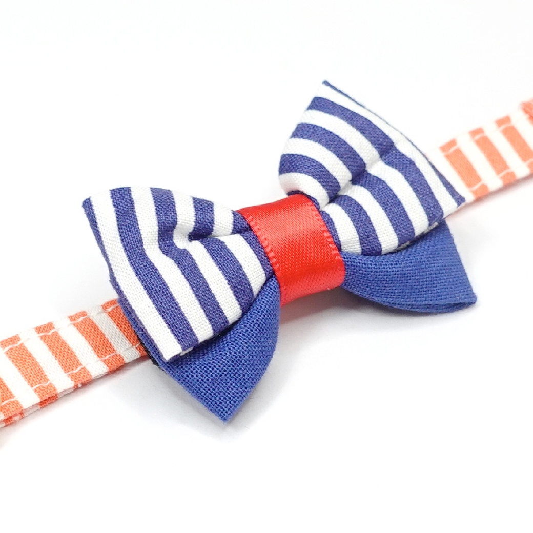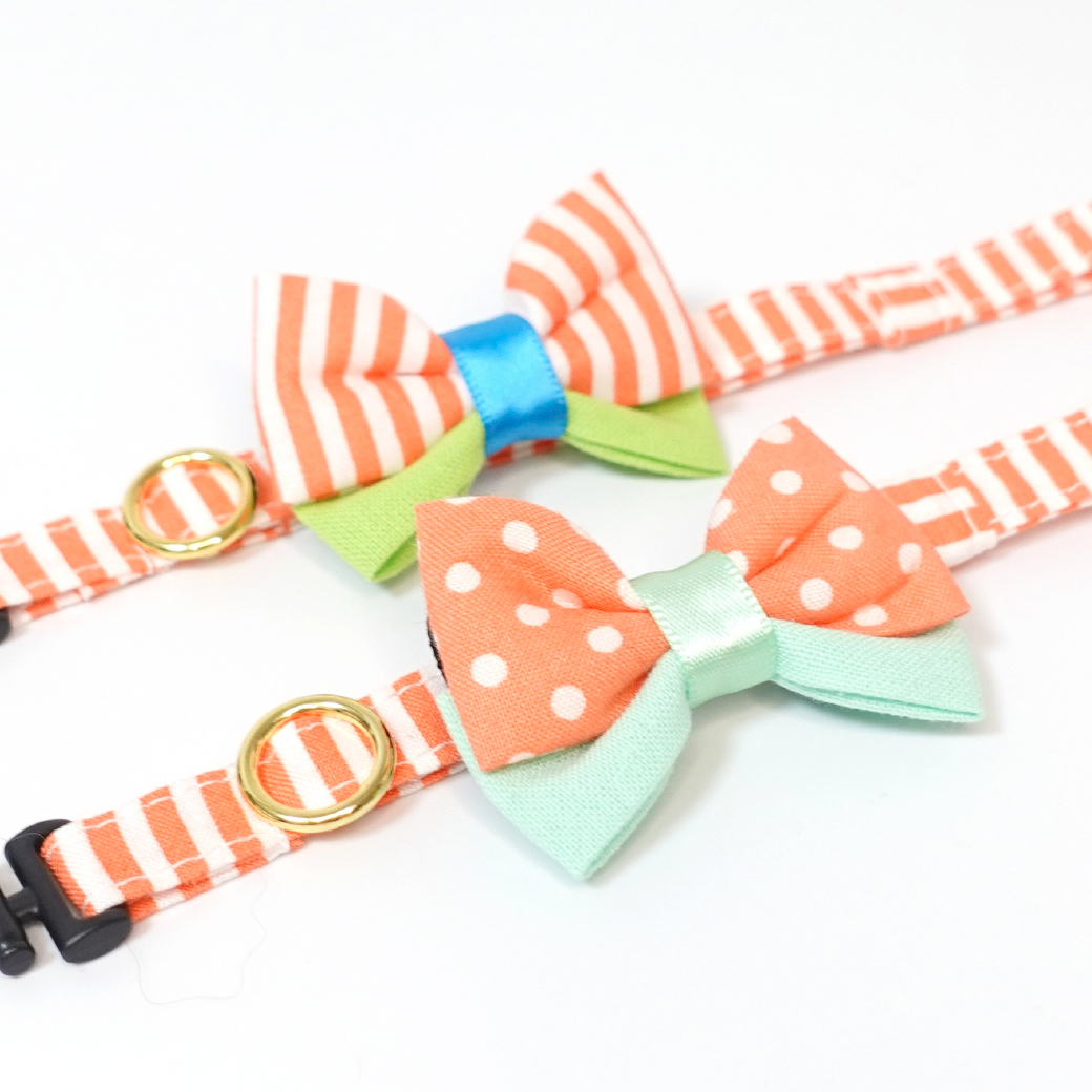 - > IRODORI・猫首輪・シンプル猫首輪/オレンジボーダー柄(リボン等の飾りパーツは別売りです)