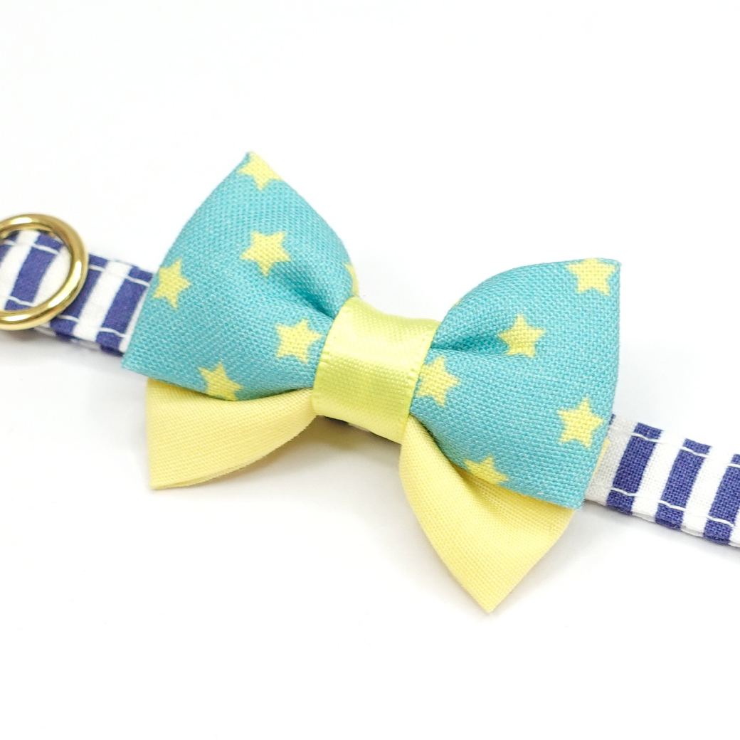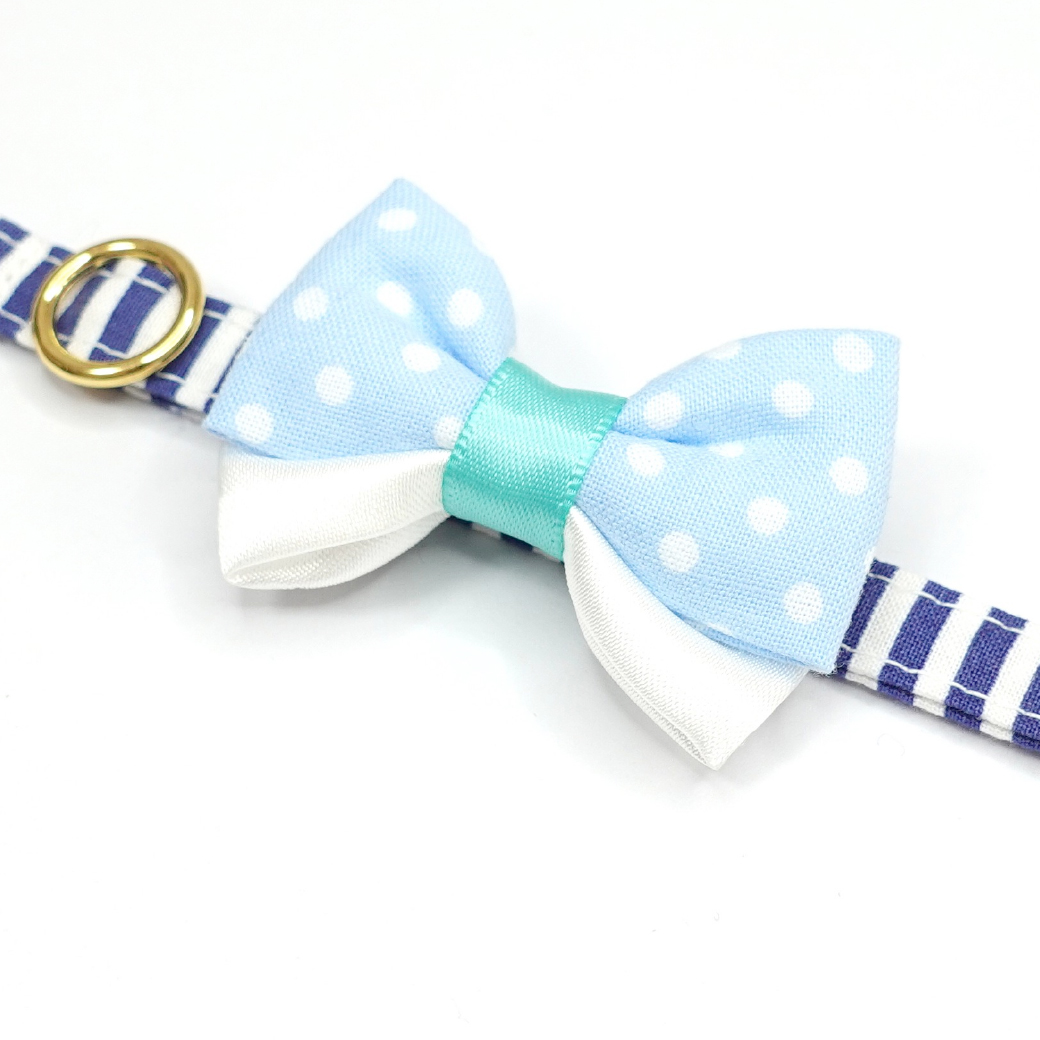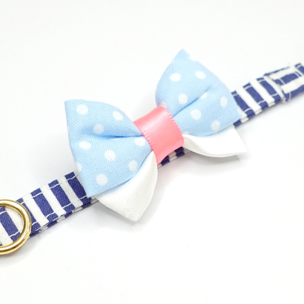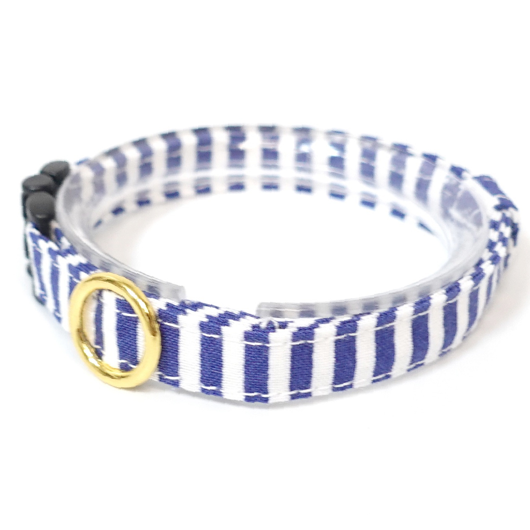 IRODORI・猫首輪・シンプル猫首輪/ブルーボーダー柄(リボン等の飾りパーツは別売りです) [IRODORI-12]