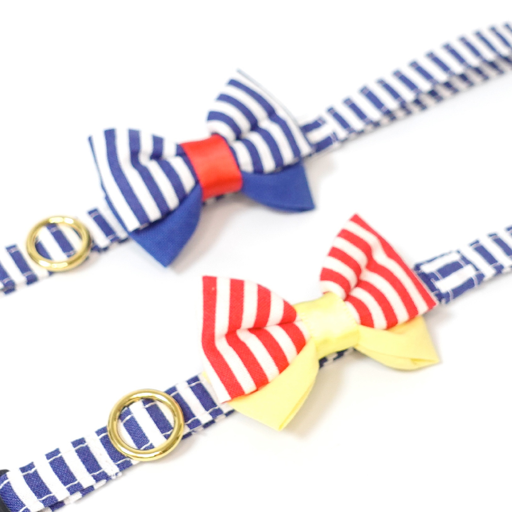 - > IRODORI・猫首輪・シンプル猫首輪/ブルーボーダー柄(リボン等の飾りパーツは別売りです)