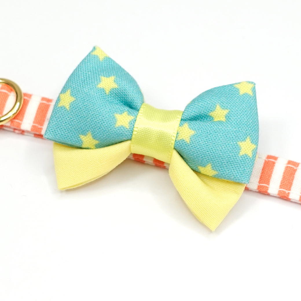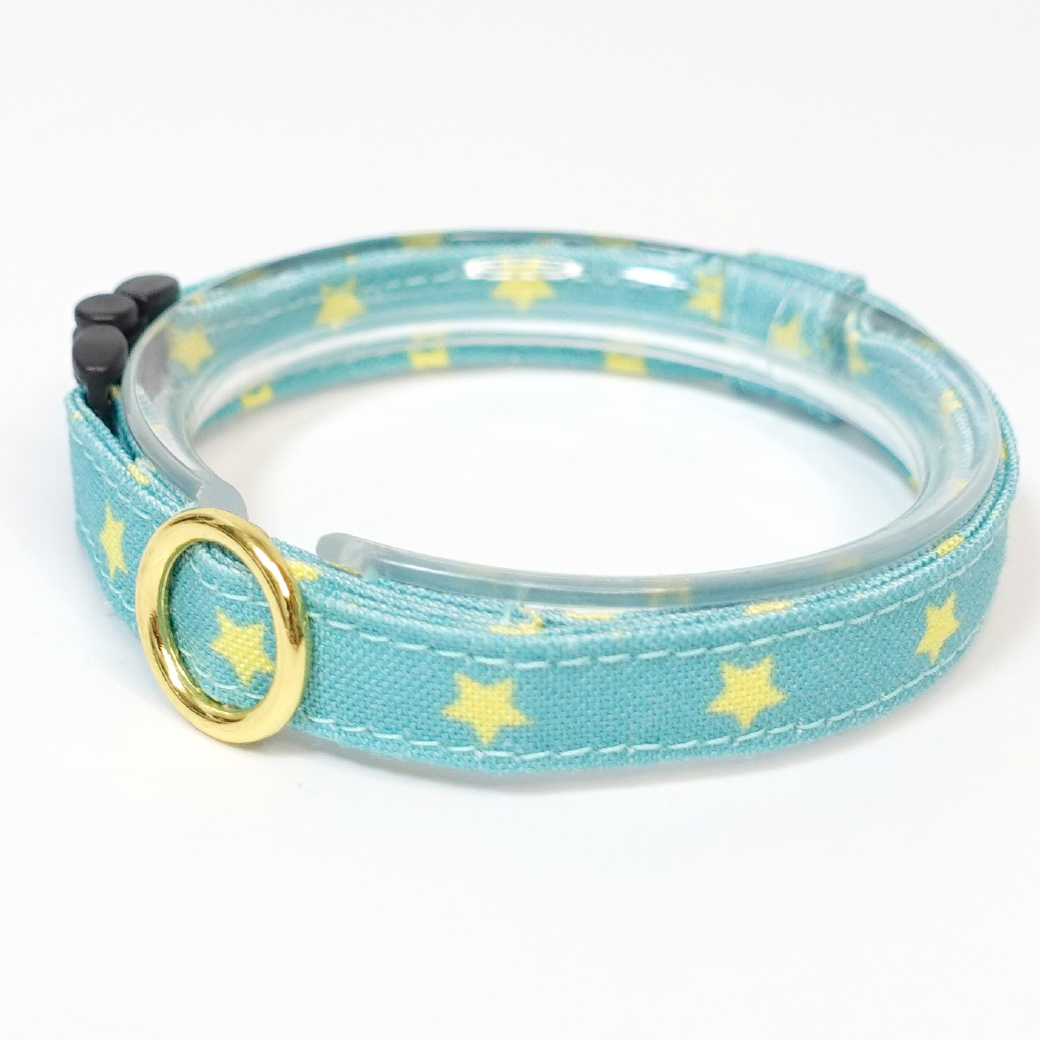 IRODORI・猫首輪・シンプル猫首輪/エメラルド×イエロー星柄(リボン等の飾りパーツは別売りです) [IRODORI-14]