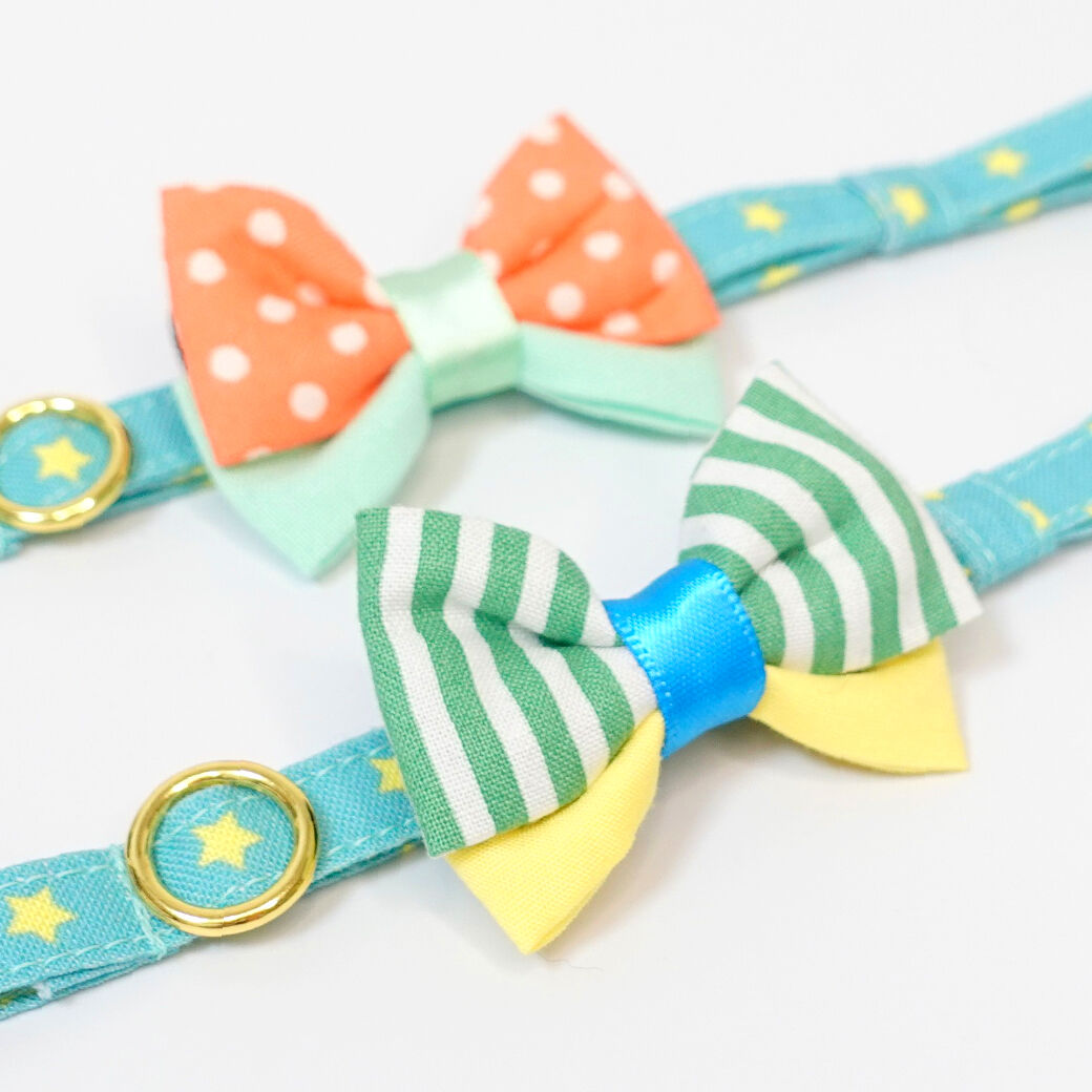 いろどり豊かなリボンを選んで、オリジナルの首輪との組み合わせをお楽しみください。