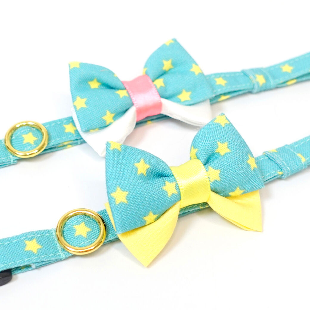 - > IRODORI・猫首輪・シンプル猫首輪/エメラルド×イエロー星柄(リボン等の飾りパーツは別売りです)
