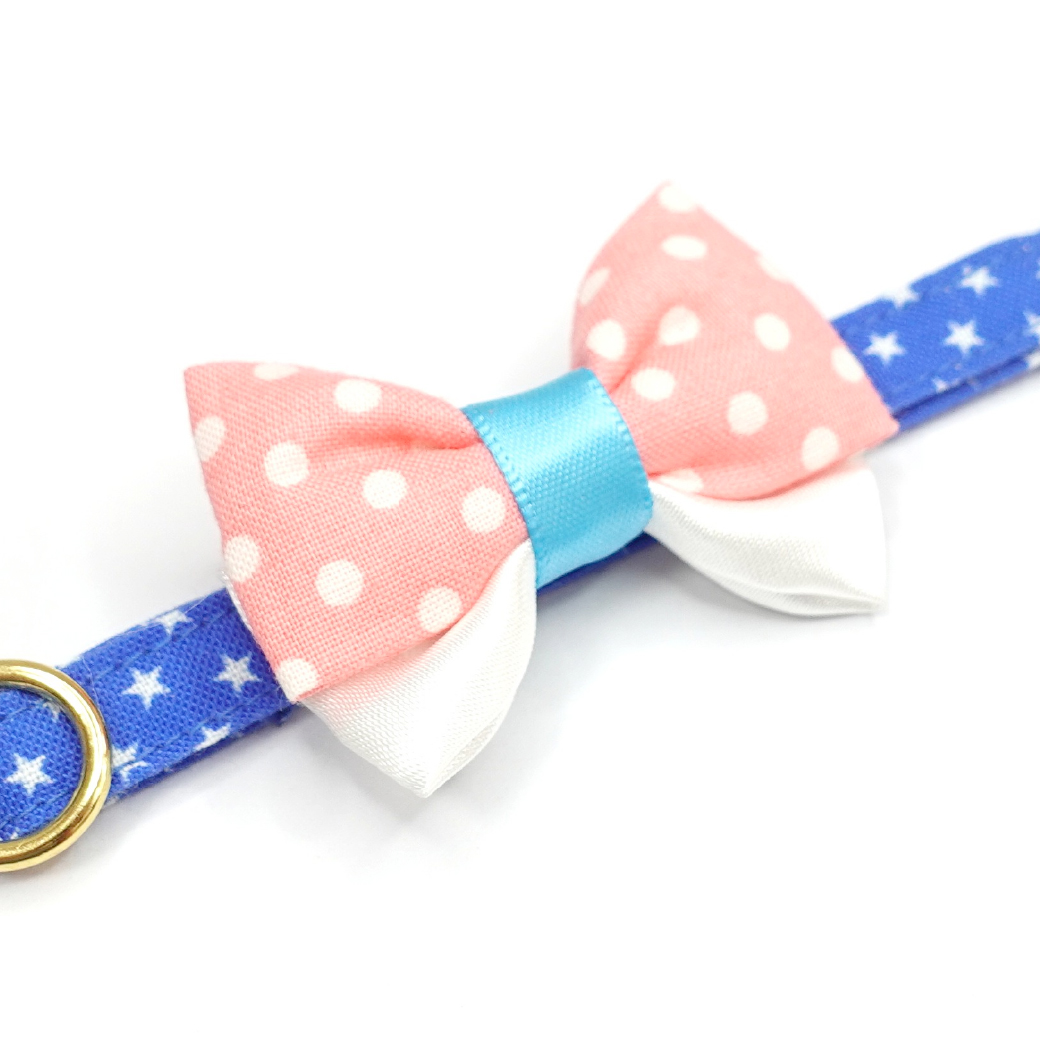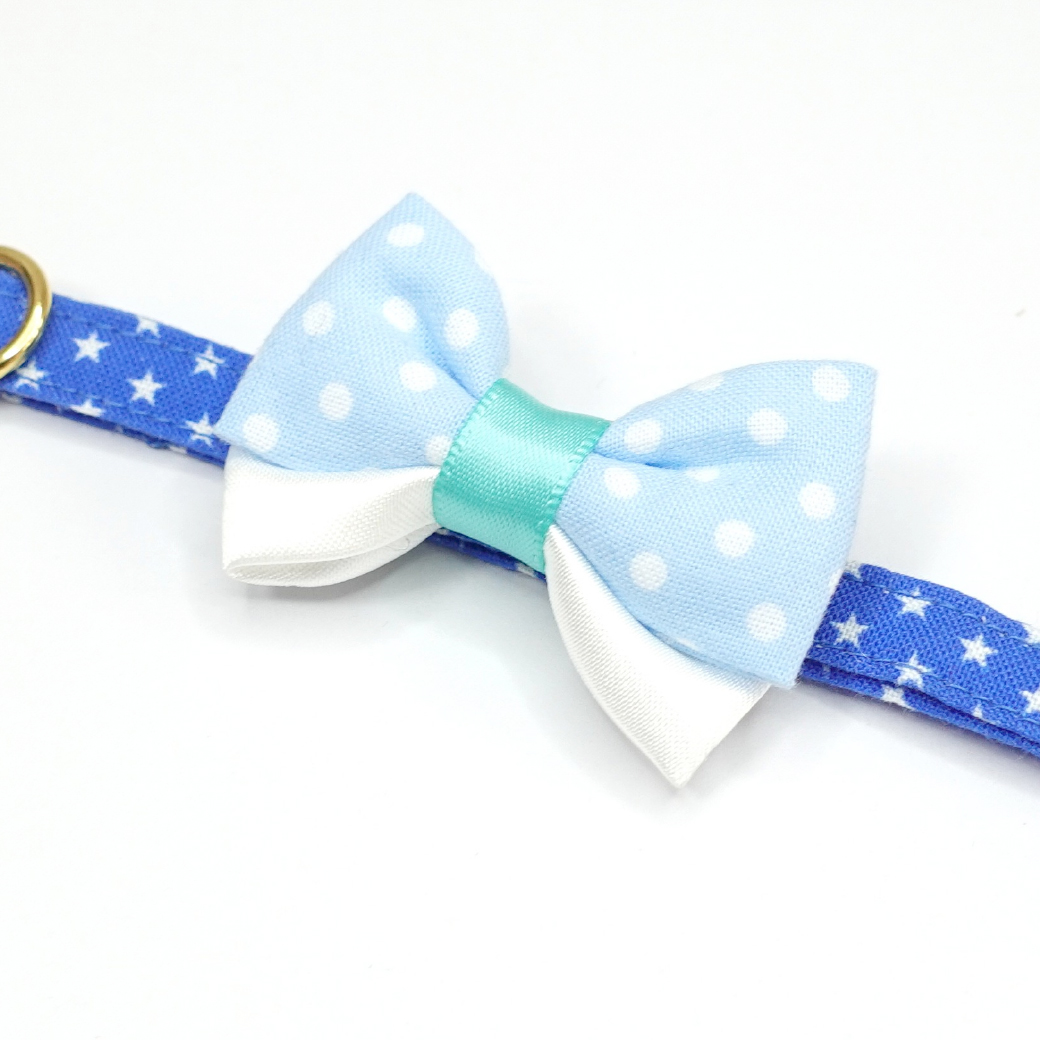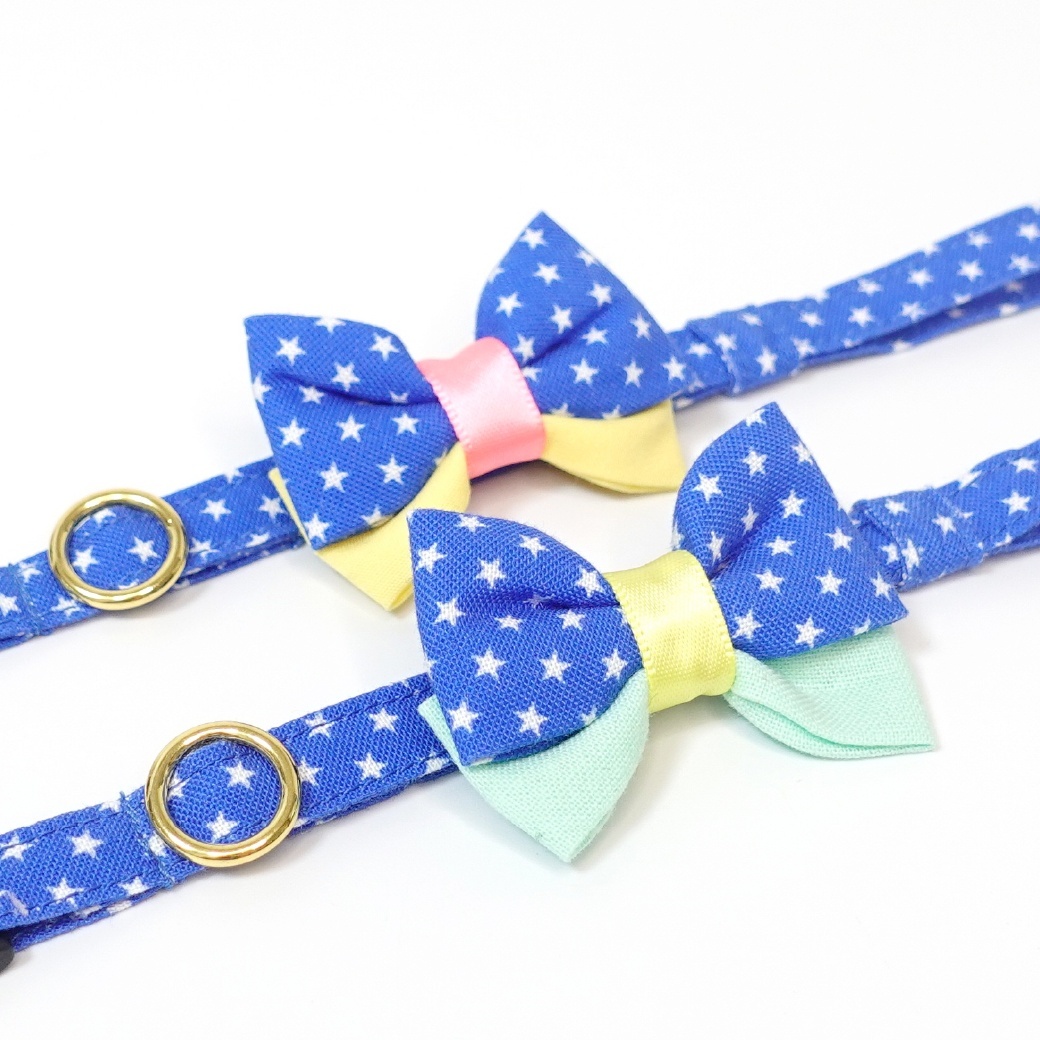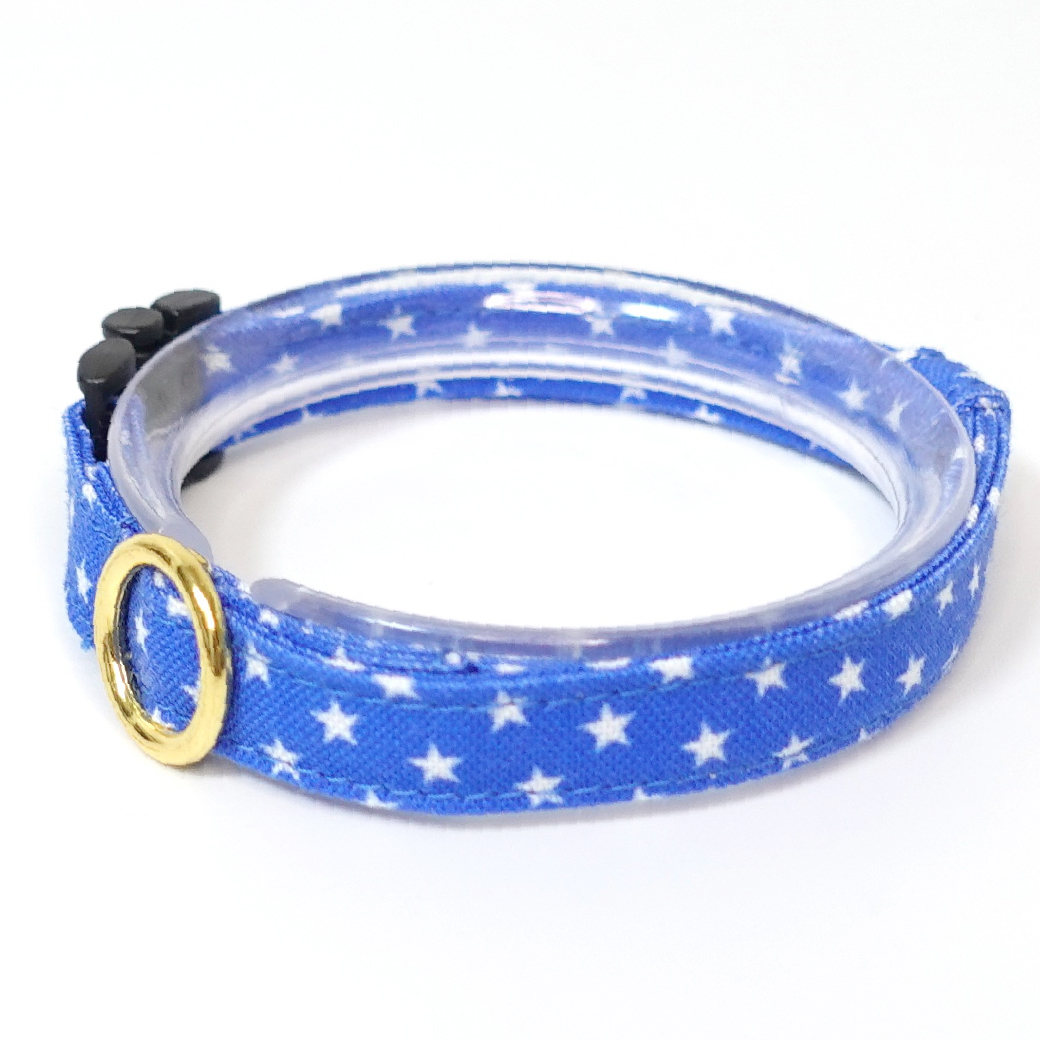 - > IRODORI・猫首輪・シンプル猫首輪/ブルー×ホワイト星柄(リボン等の飾りパーツは別売りです)