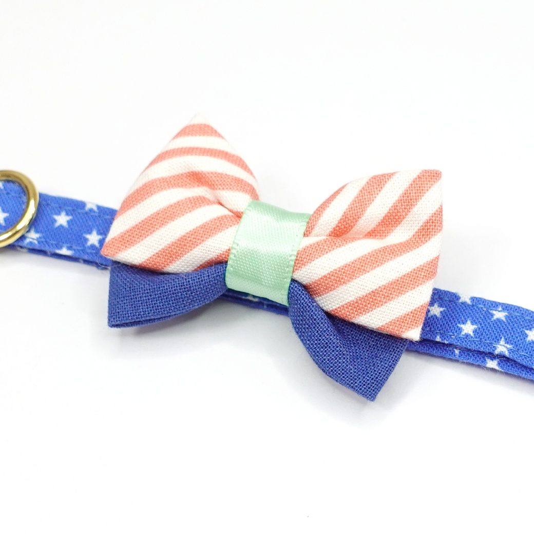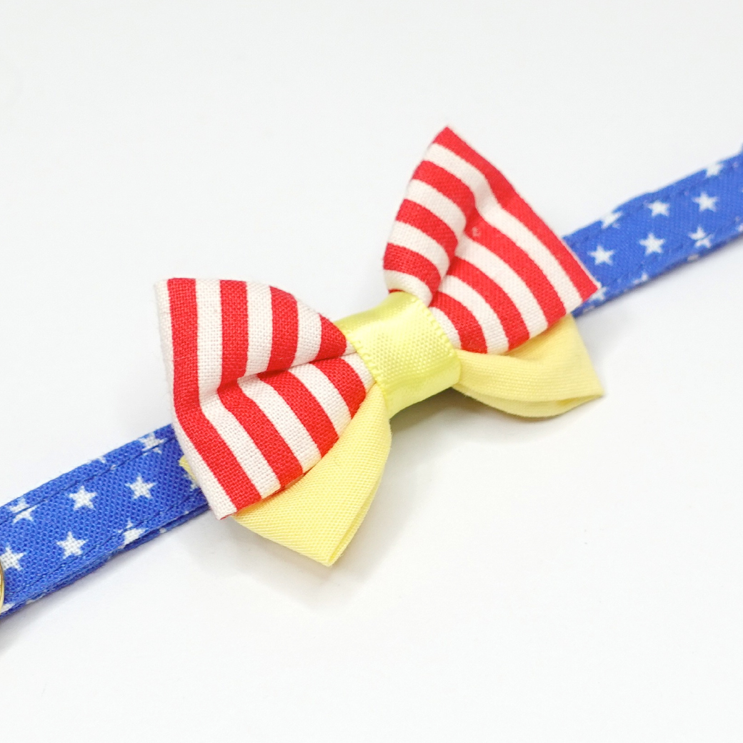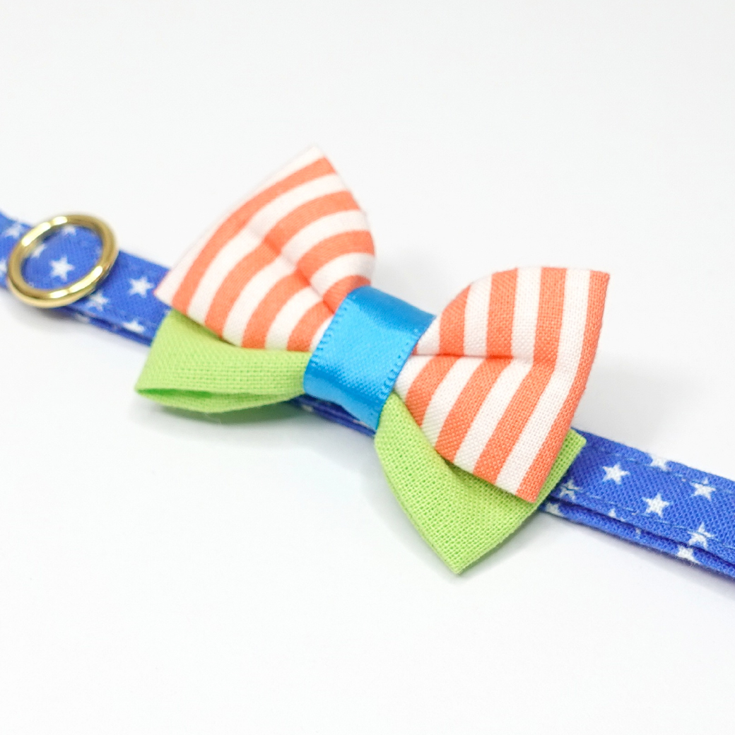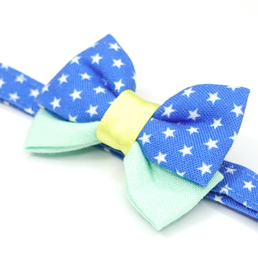 - > IRODORI・猫首輪・シンプル猫首輪/ブルー×ホワイト星柄(リボン等の飾りパーツは別売りです)