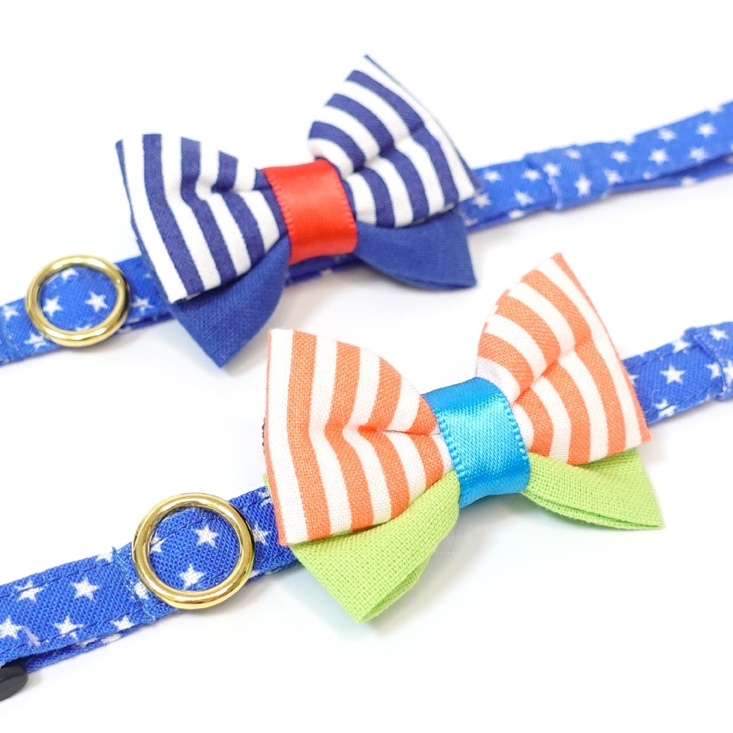 いろどり豊かなリボンを選んで、オリジナルの首輪との組み合わせをお楽しみください。