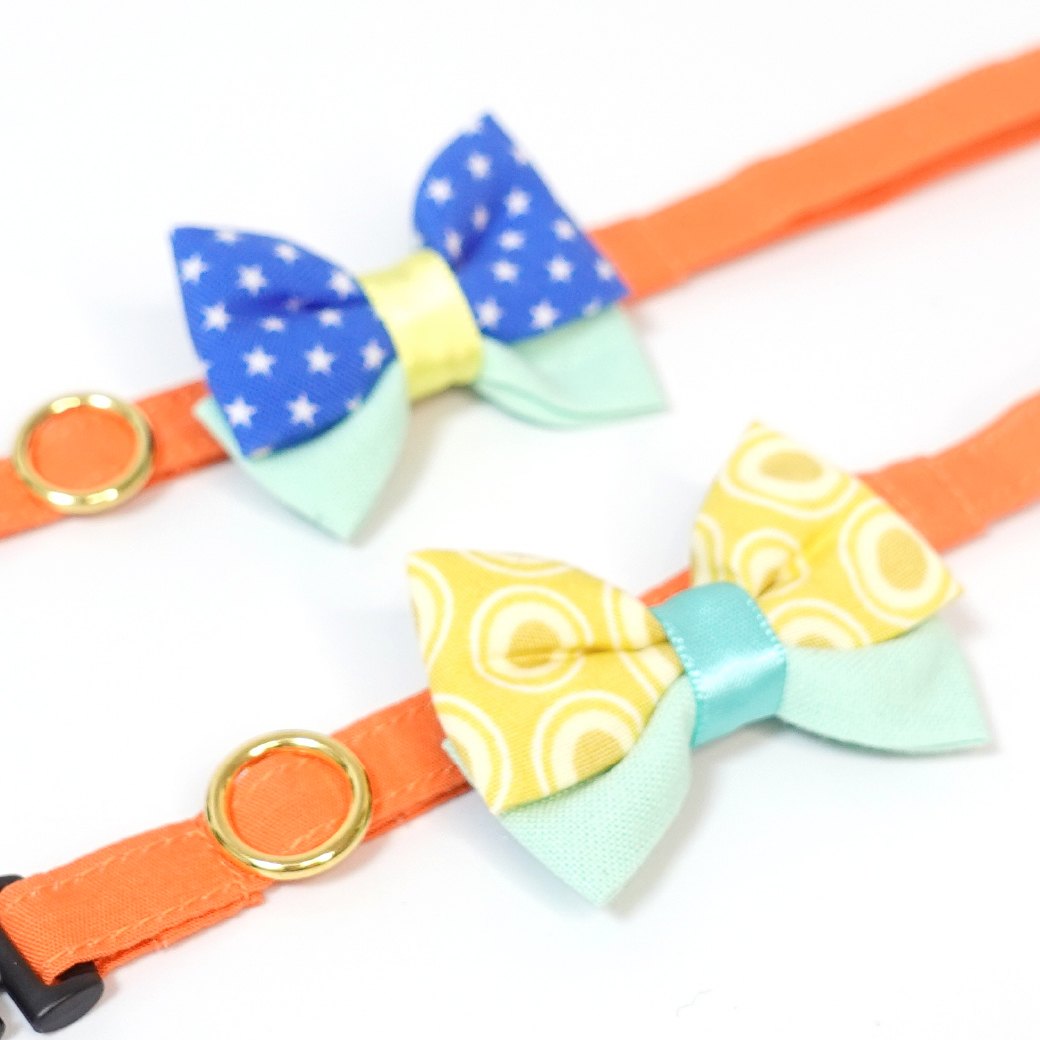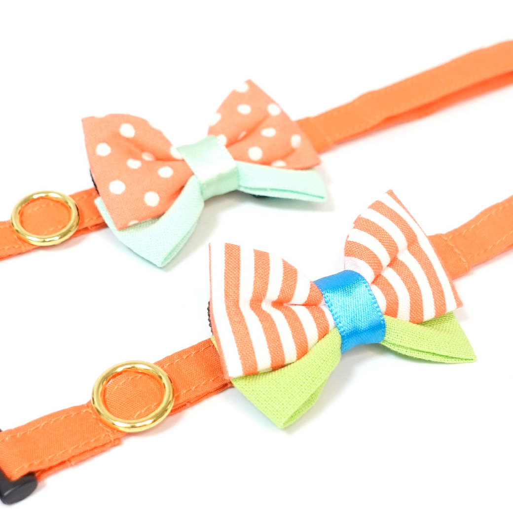 いろどり豊かなリボンを選んで、オリジナルの首輪との組み合わせをお楽しみください。