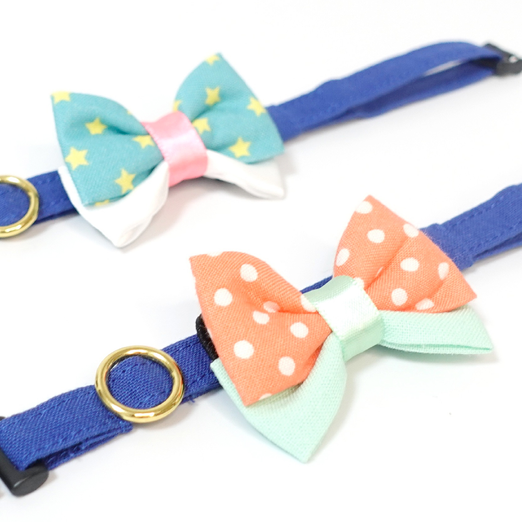 いろどり豊かなリボンを選んで、オリジナルの首輪との組み合わせをお楽しみください。