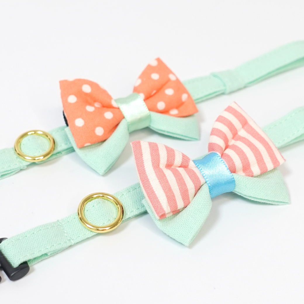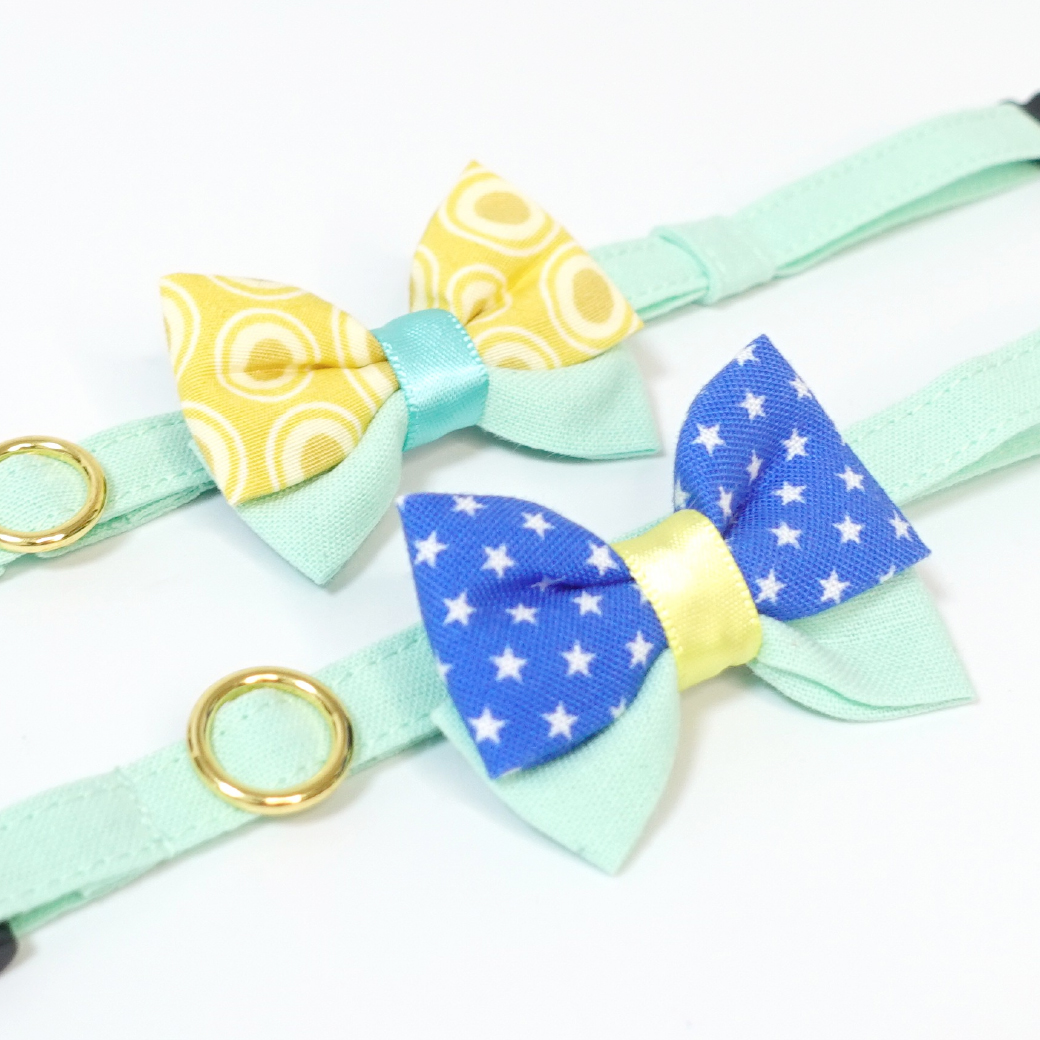 いろどり豊かなリボンを選んで、オリジナルの首輪との組み合わせをお楽しみください。
