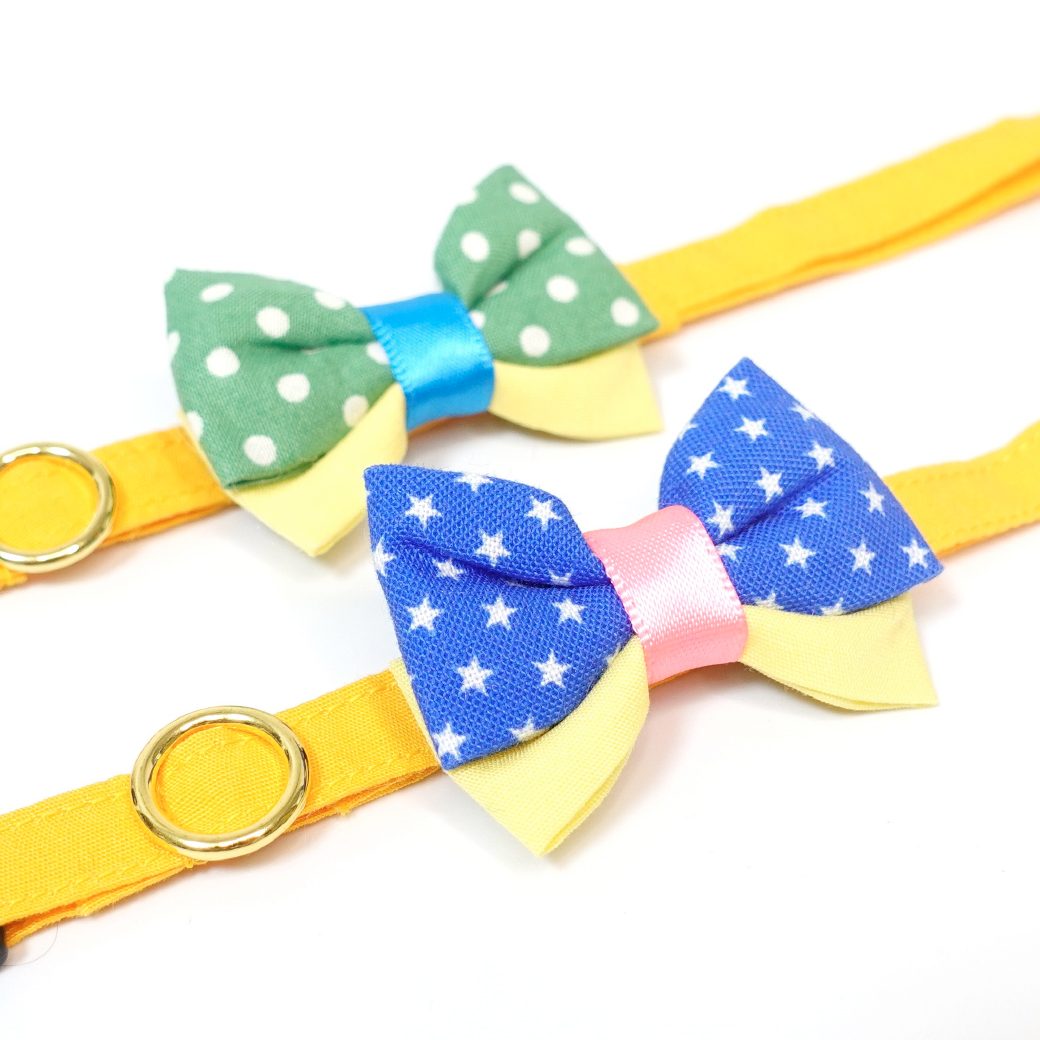 いろどり豊かなリボンを選んで、オリジナルの首輪との組み合わせをお楽しみください。