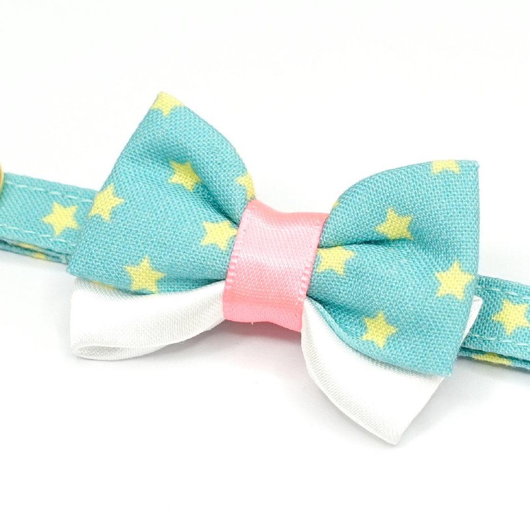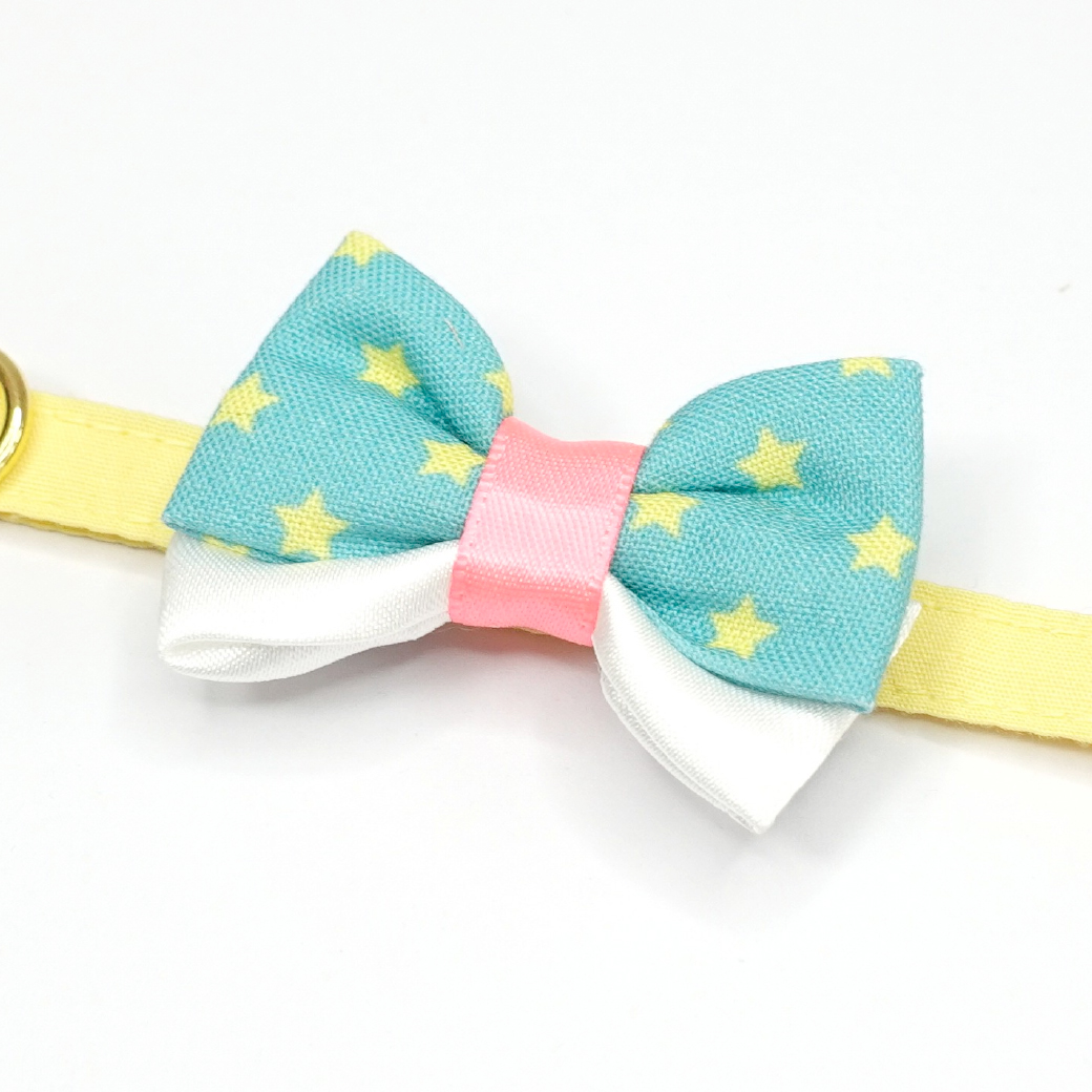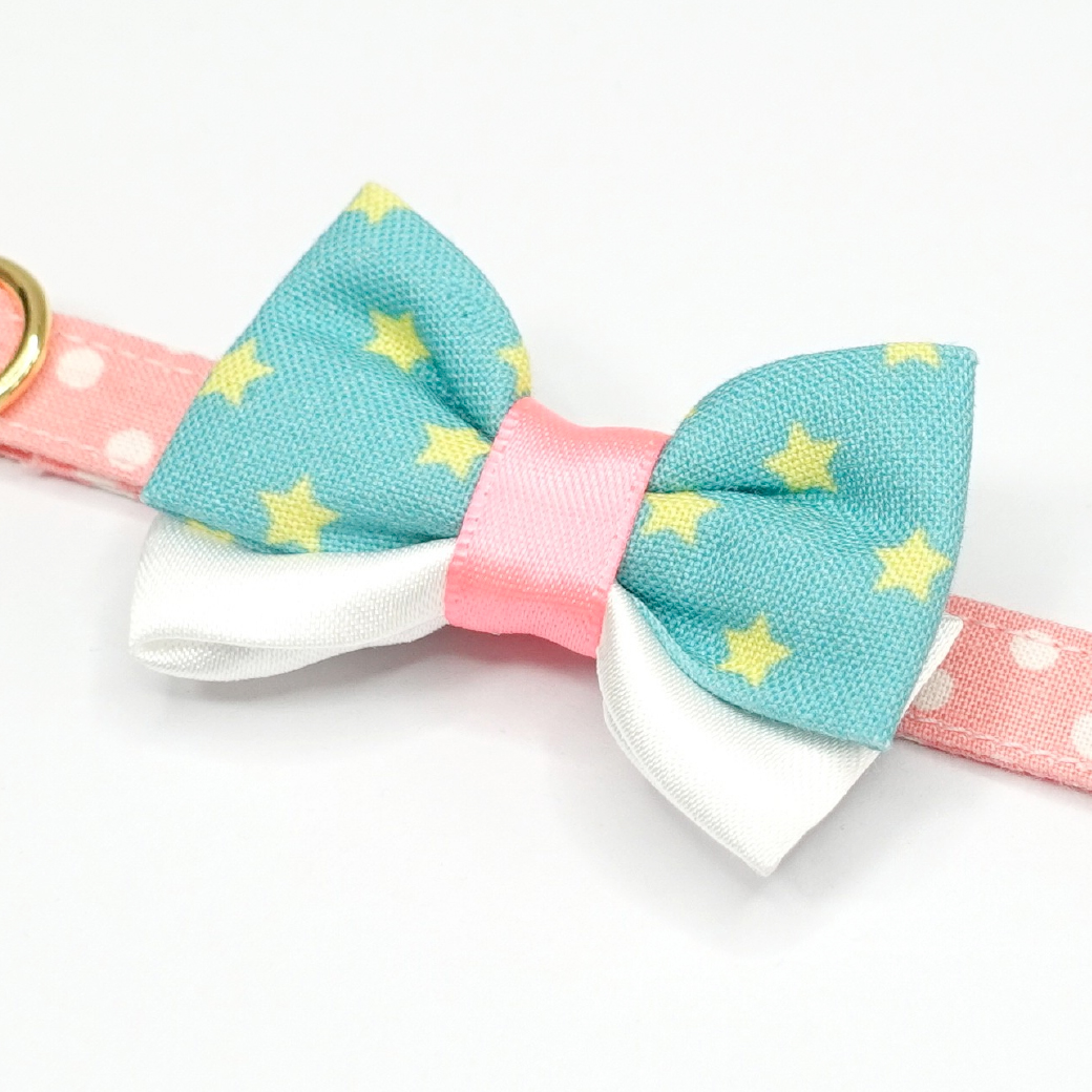 IRODORI・リボン/セレクトパーツ/エメラルドグリーン星柄×ピンク(首輪は別売りです) [IRODORI-R3]