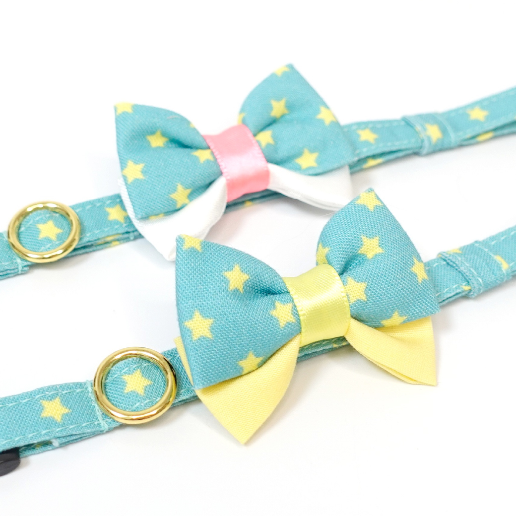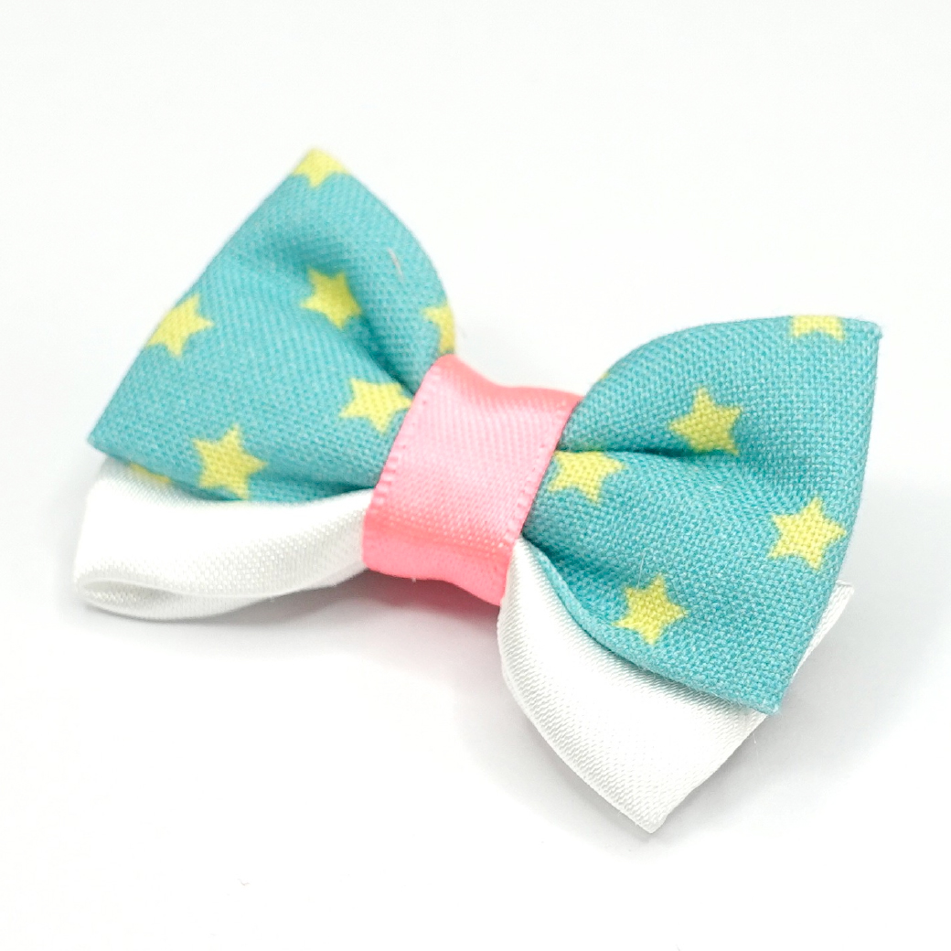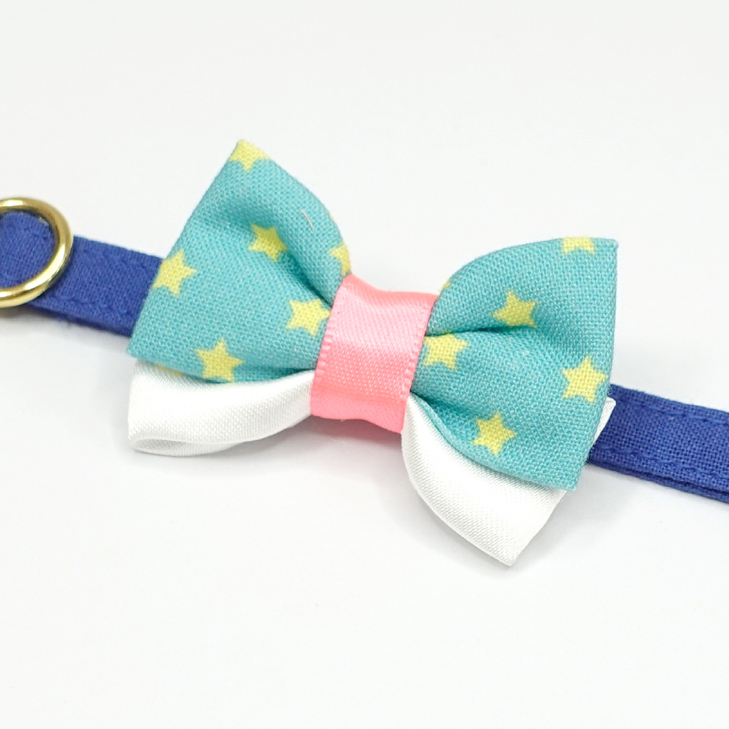 IRODORI・リボン/セレクトパーツ/エメラルドグリーン星柄×ピンク(首輪は別売りです) [IRODORI-R3]