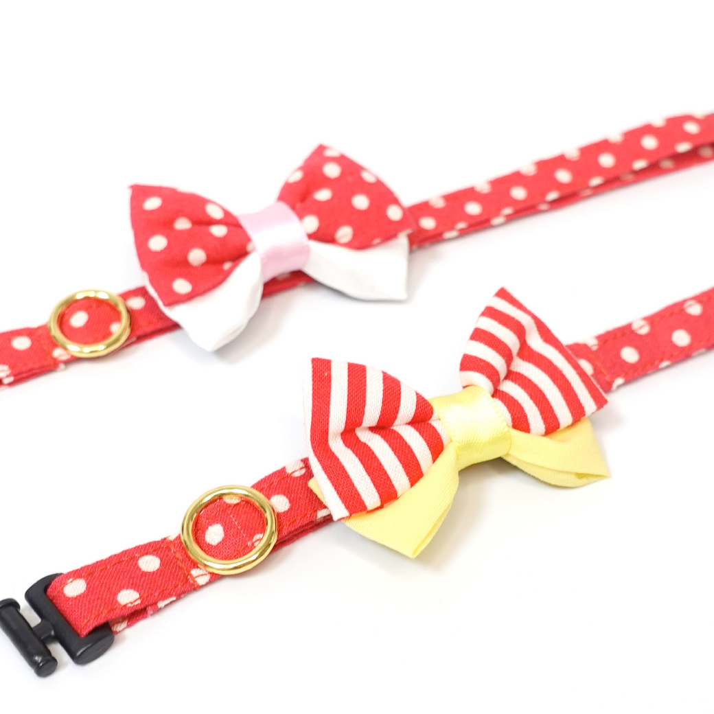 いろどり豊かなリボンを選んで、オリジナルの首輪との組み合わせをお楽しみください。