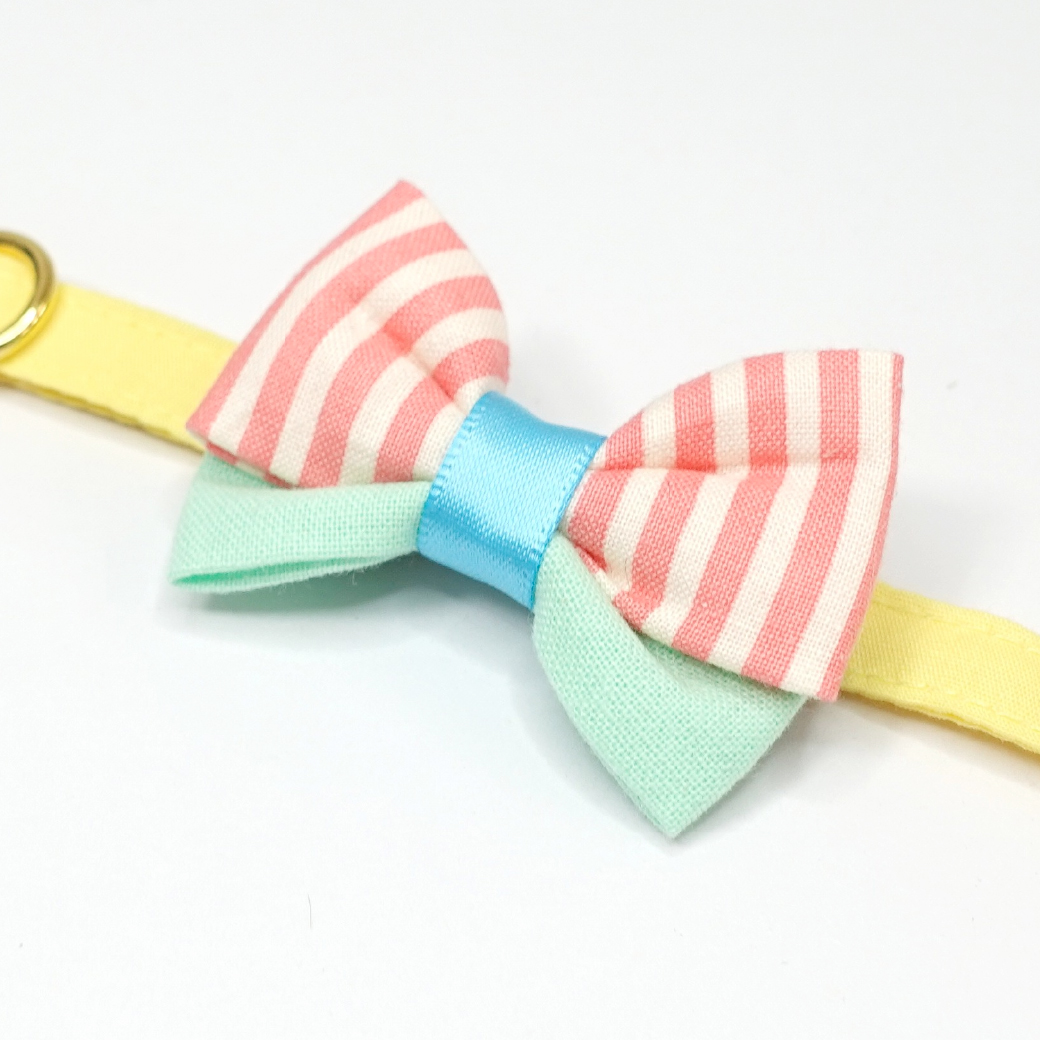 IRODORI・リボン/セレクトパーツ/ピンクボーダー柄(首輪は別売りです) [IRODORI-R20]