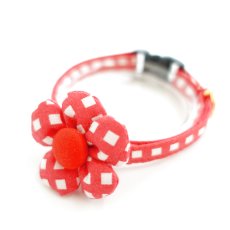 レトロチェック・フラワーモチーフの首輪(レッド) [Flower-5]