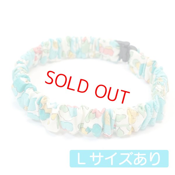 エアリーシュシュ・LIBERTYファブリック・シュシュ猫首輪・猫首輪・リバティプリント Alexandra(アレキサンドラ)ブルー [Airy-SBシュシュ-32]