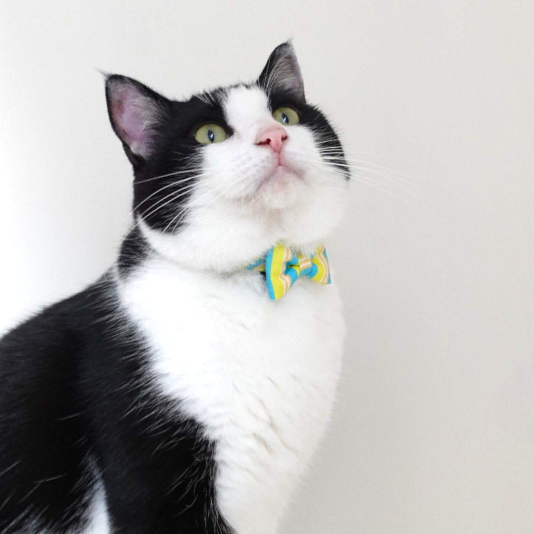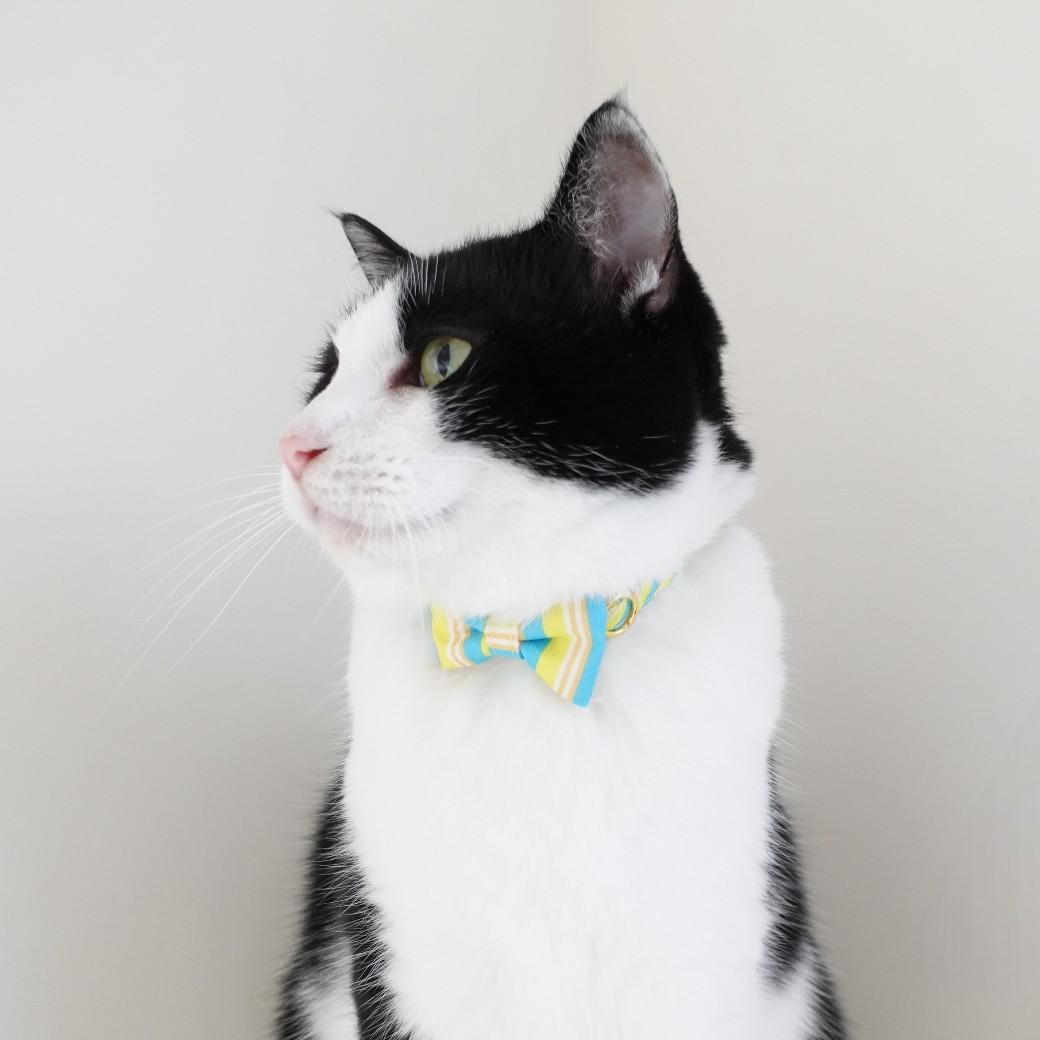 Nonbillieオリジナルボーダー柄・リボン猫首輪(ターコイズブルー×イエローグリーン) [Originalリボン-14]