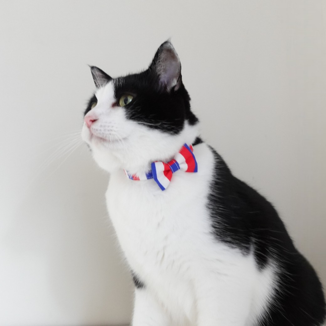 Nonbillieオリジナルボーダー柄・リボン猫首輪(トリコロール) [Originalリボン-17]