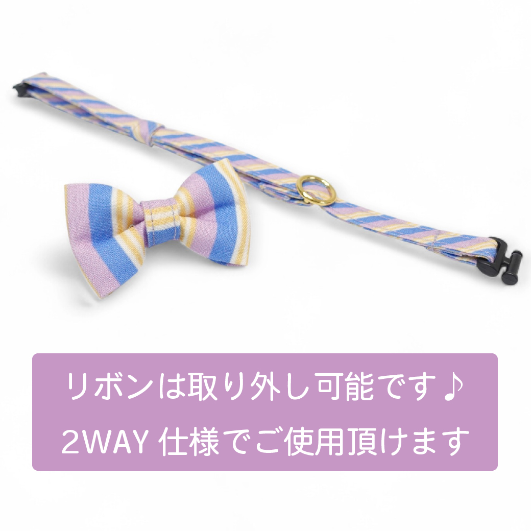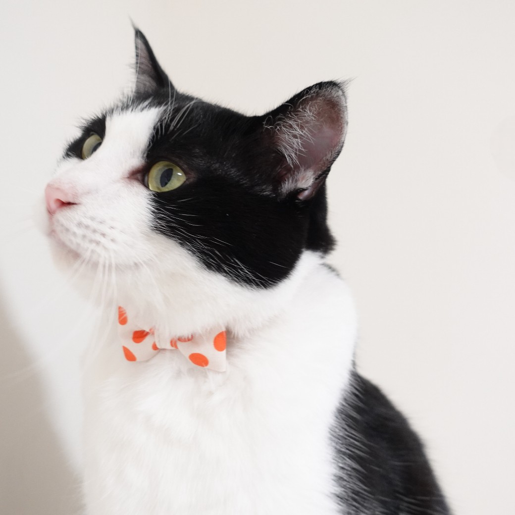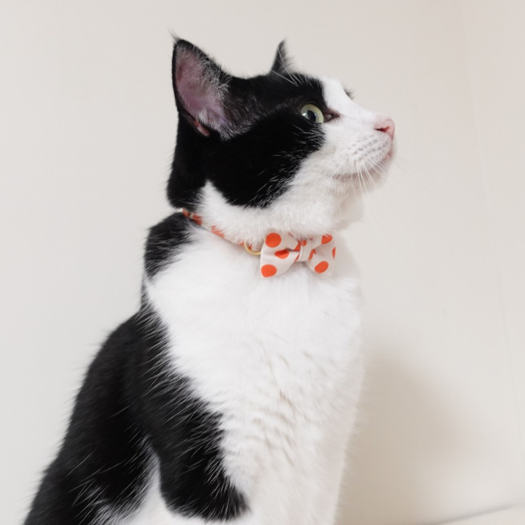 Nonbillieオリジナルボーダー柄・リボン猫首輪(クリーム×オレンジドット) [Originalリボン-19]