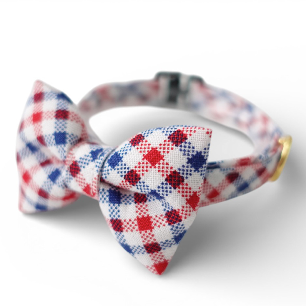 《とろける恋心コレクション 〜Red Check & Heart〜》リボンタイプの猫首輪(トリコロールチェック) [RCH-3]