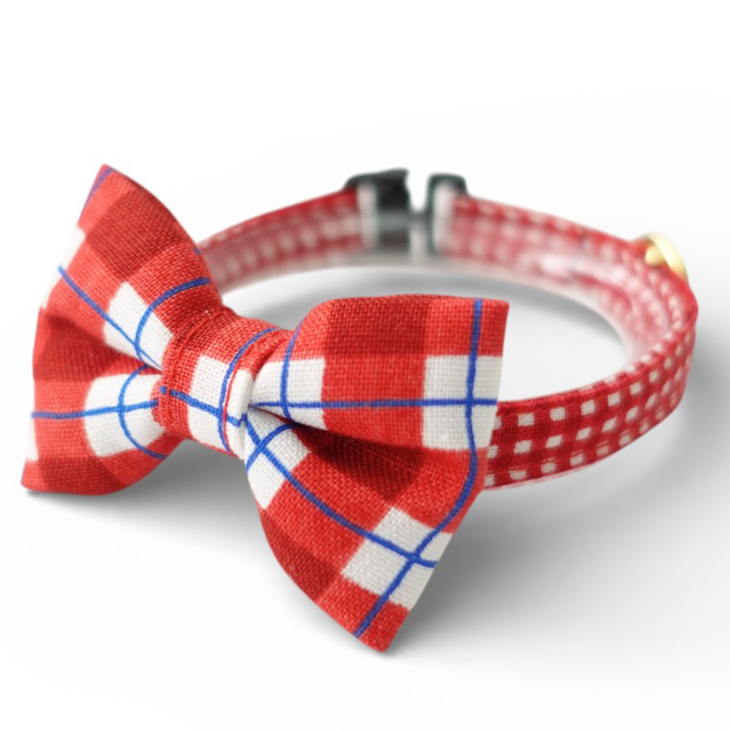 - > 《とろける恋心コレクション 〜Red Check & Heart〜》リボンタイプの猫首輪(レッドブロックチェック)