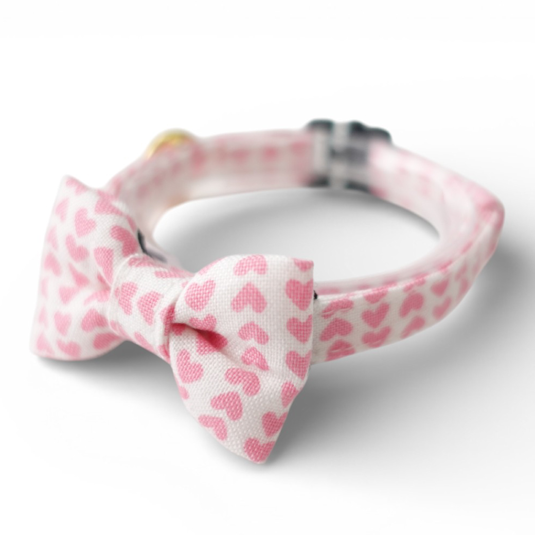 ミニリボン《とろける恋心コレクション 〜Red Check & Heart〜》リボンタイプの猫首輪(ハートドット)成猫・子猫/2サイズ展開 [ミニRCH-3]