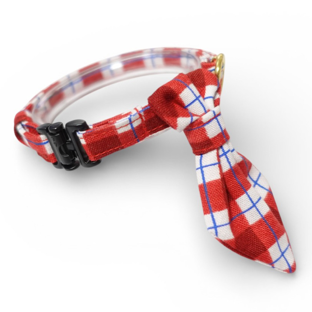 《とろける恋心コレクション 〜Red Check & Heart〜》ネクタイ猫首輪(レッドブロックチェック) [ネクタイRCH-2]