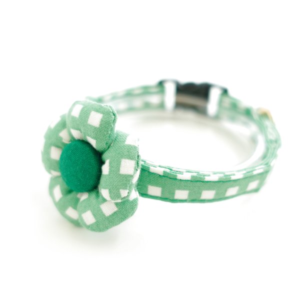生地の配色も可愛いお花の首輪。ぜひ、おめかししてくださいね♪