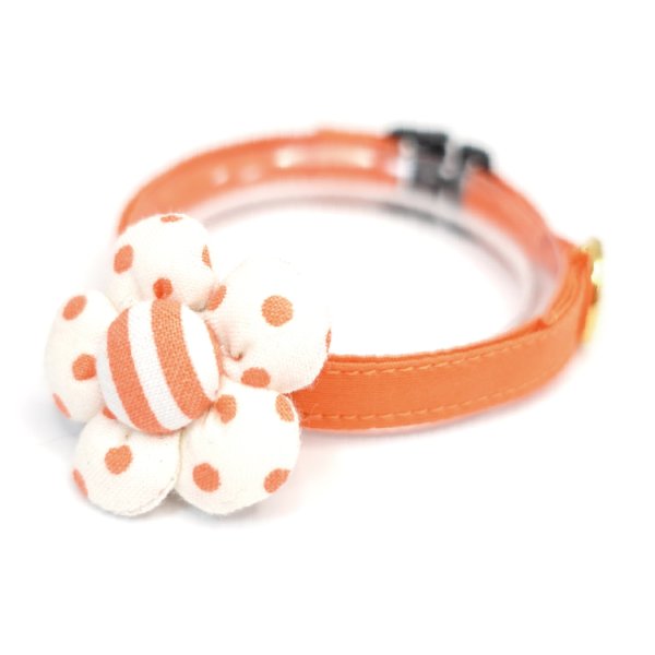 レトロフラワー・お花モチーフ首輪(赤首輪×オレンジ花びら) [Flower-8]