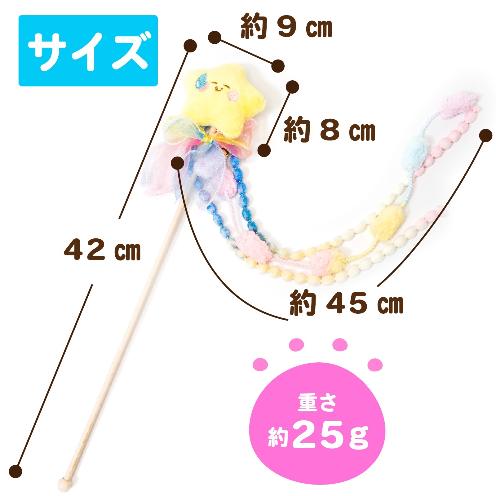 【星・ケーキ・わたあめ】の個性あふれるモチーフが猫ちゃんの興味を引き、遊びながらストレスを解消!