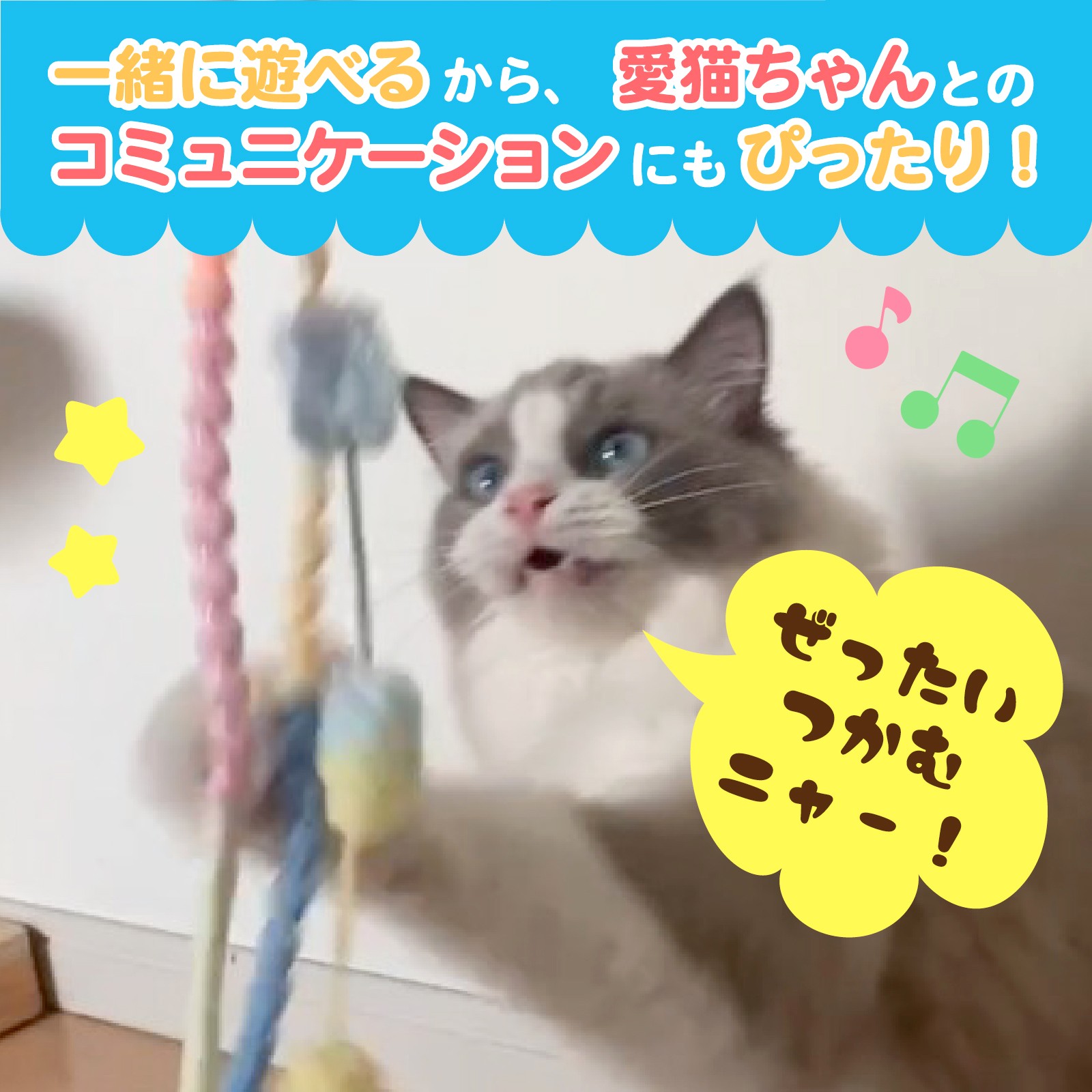 一緒に遊ぶことでコミュニケーションが生まれ、猫との絆がぐっと深まります。 猫も飼い主も笑顔になれる「幸せな癒し時間」を演出します!