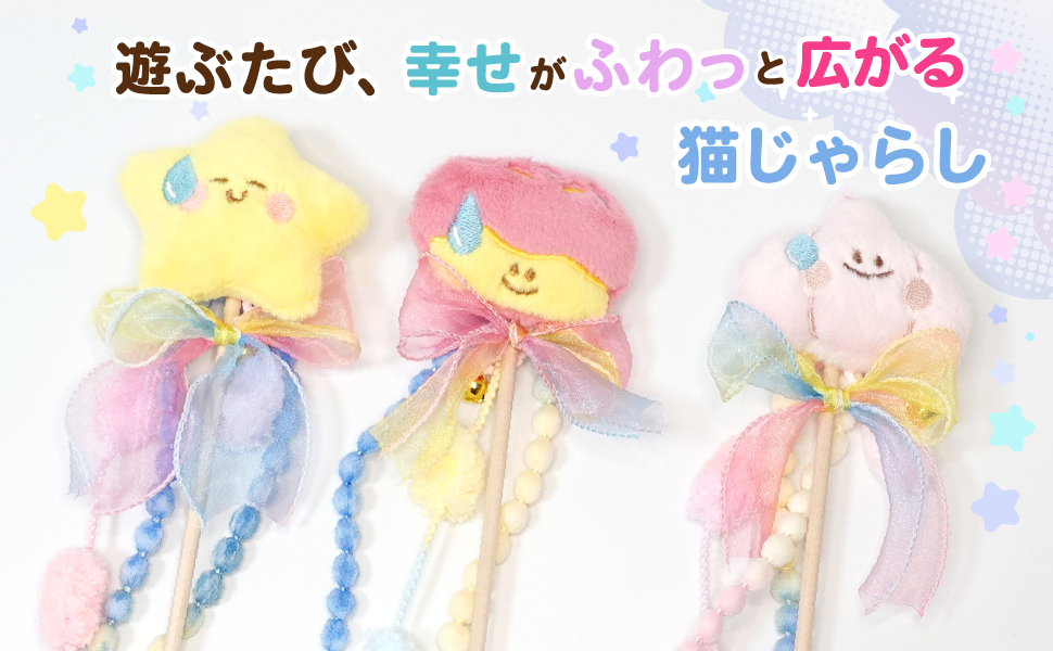 【星・ケーキ・わたあめ】の個性あふれるモチーフが猫ちゃんの興味を引き、遊びながらストレスを解消!