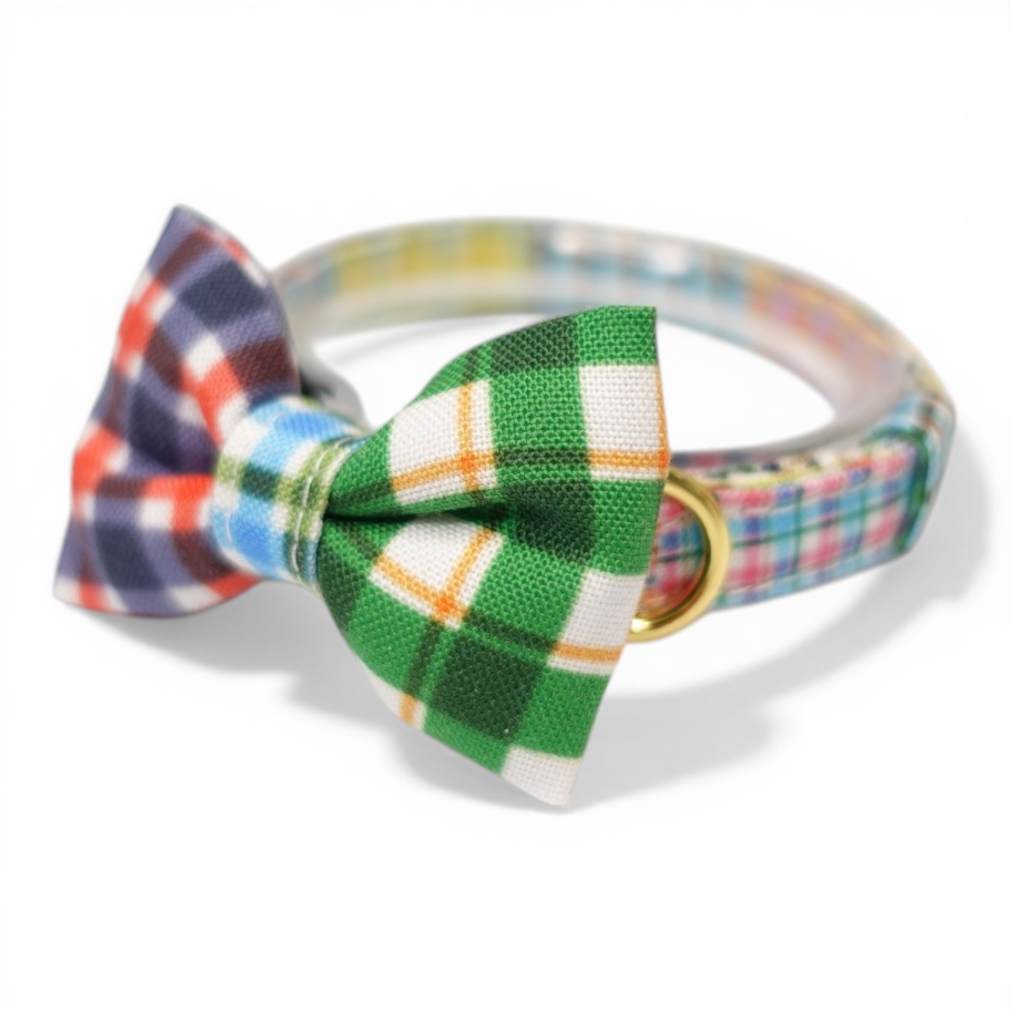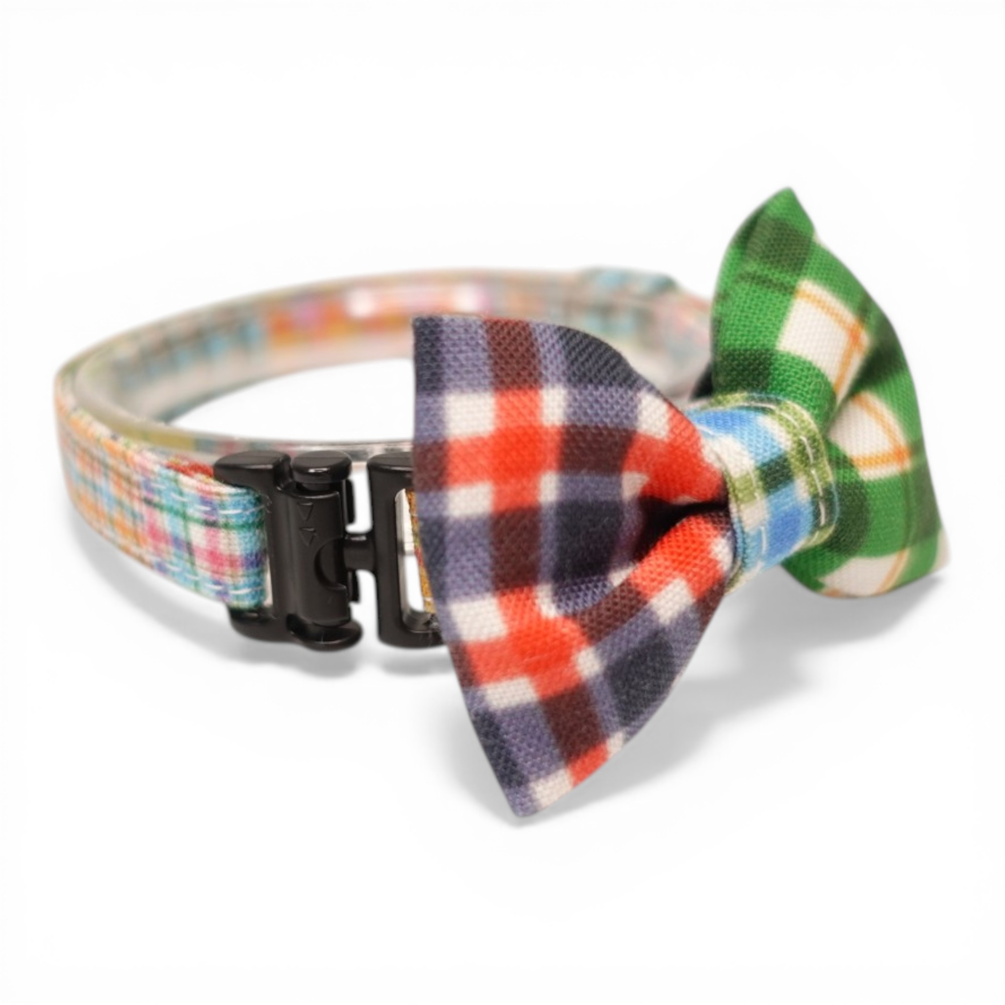 - > 世界にひとつの組み合わせ|左右で柄が異なる パッチワーク風リボン首輪 【限定1点】A柄