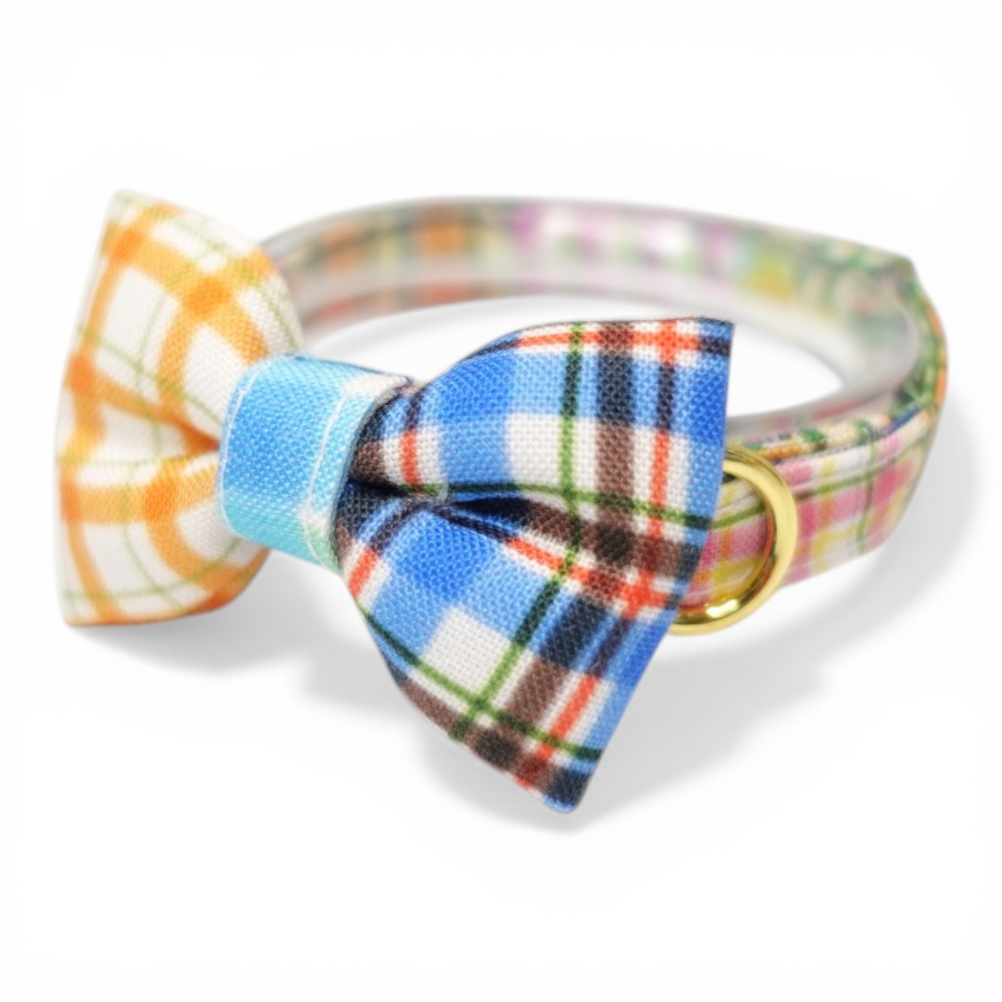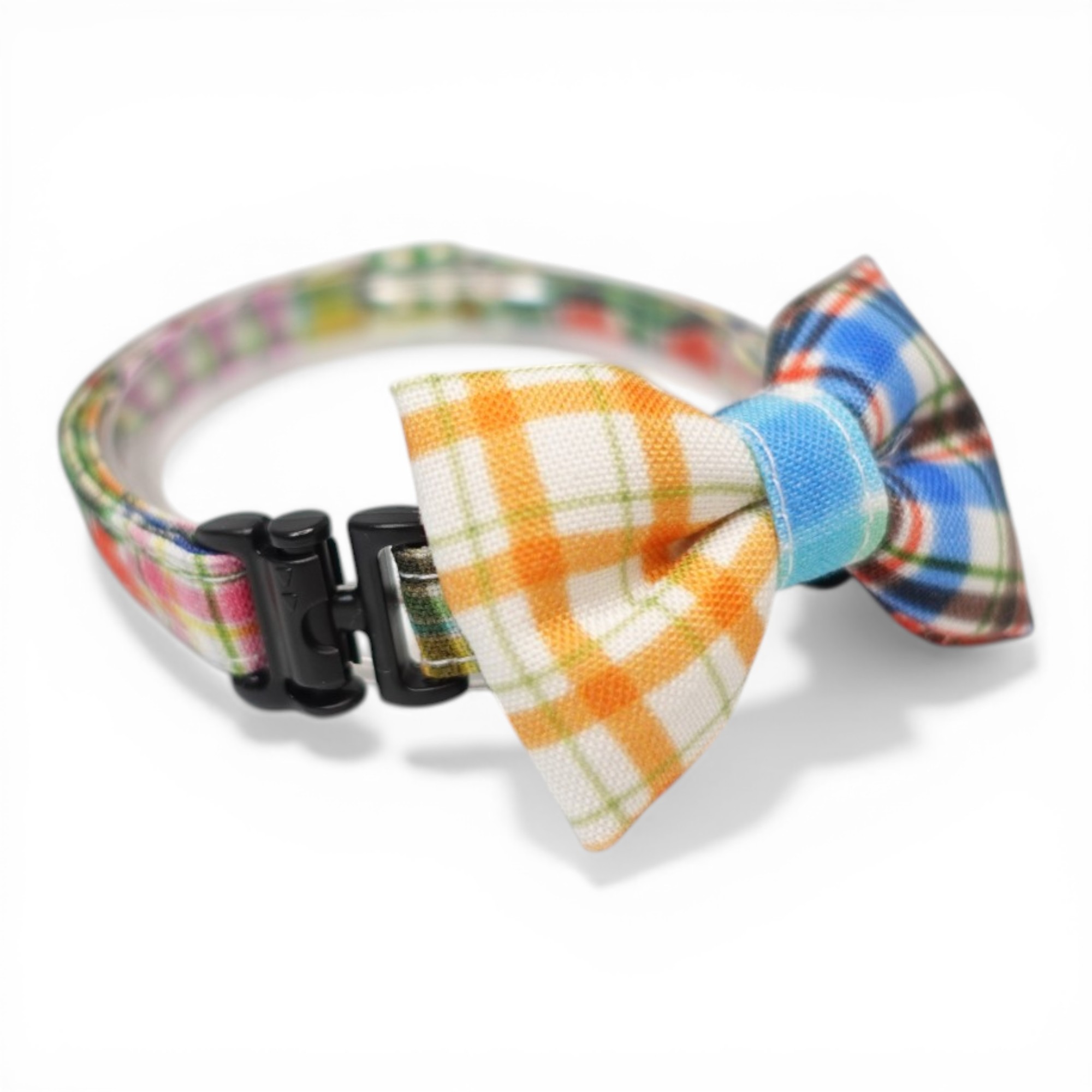 - > 世界にひとつの組み合わせ|左右で柄が異なる パッチワーク風リボン首輪 【限定1点】C柄