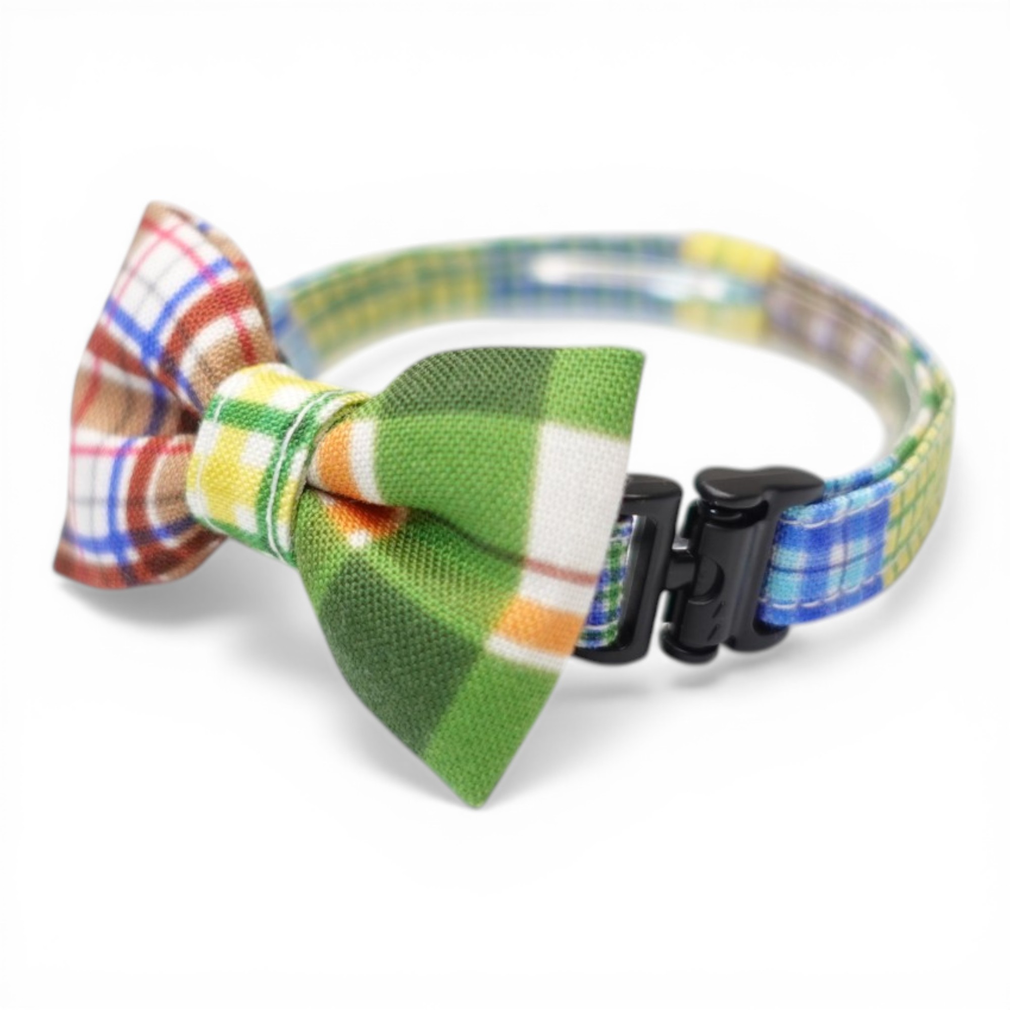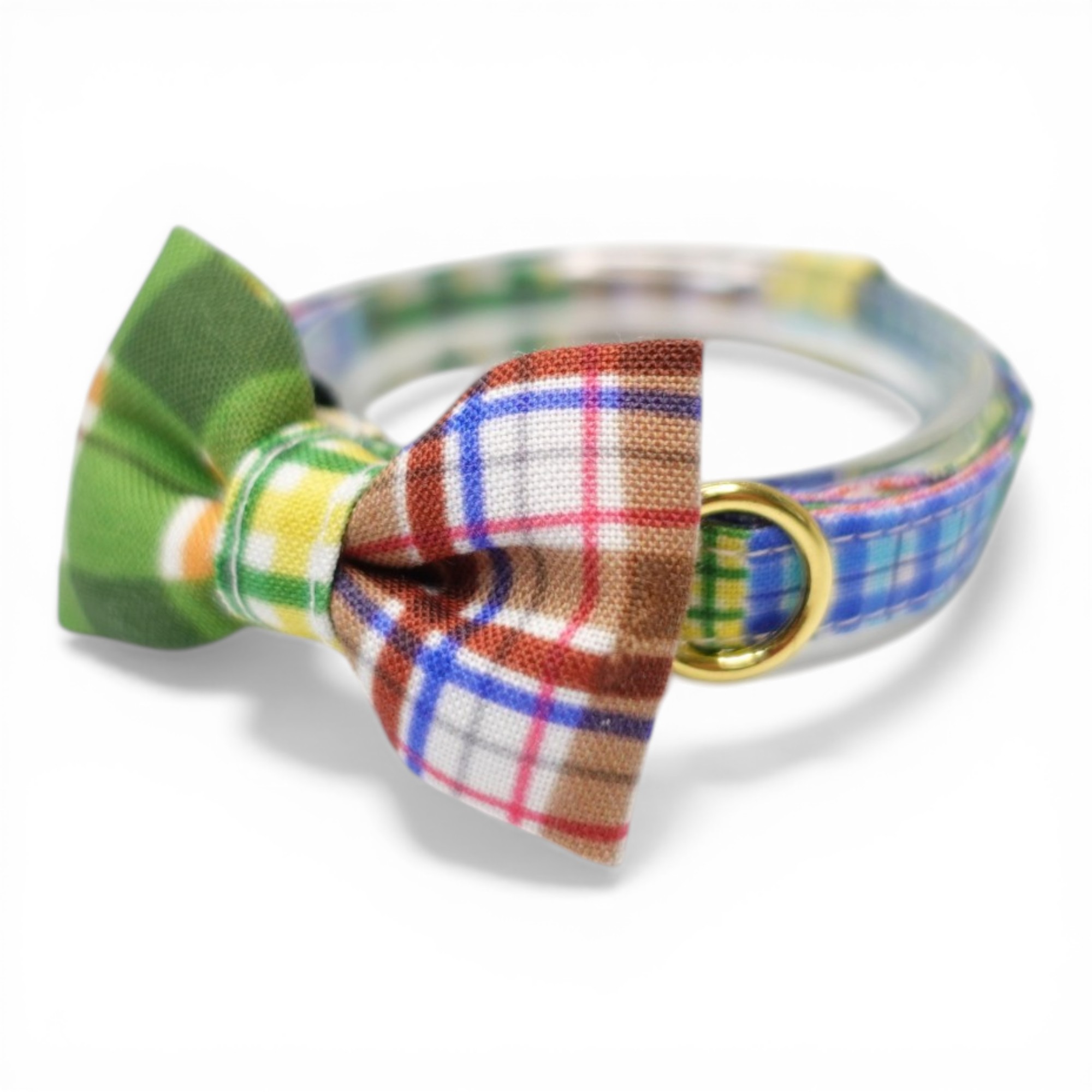 - > 世界にひとつの組み合わせ|左右で柄が異なる パッチワーク風リボン首輪 【限定1点】E柄